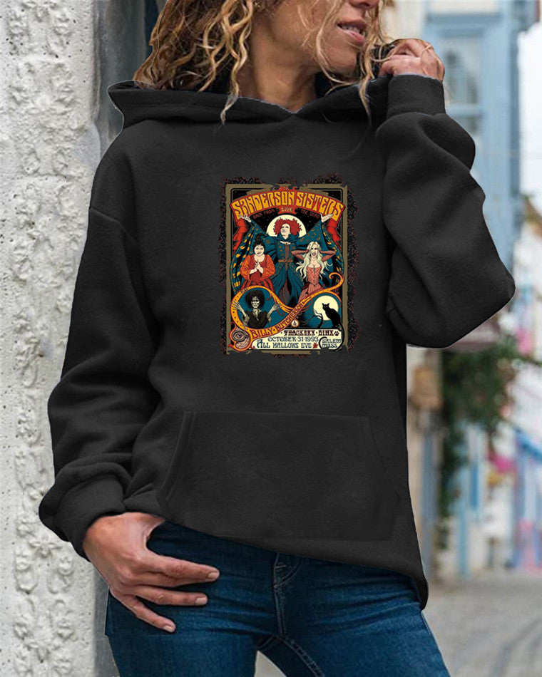 Halloween Costumes Pattern Printed Long-Sleeved Hooded Sweater for Women