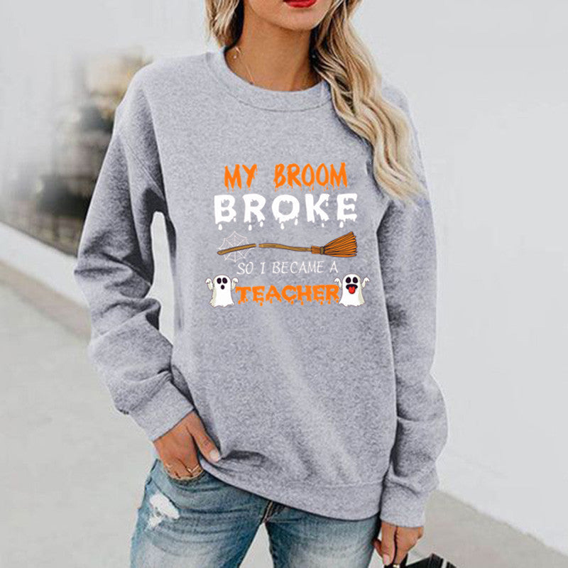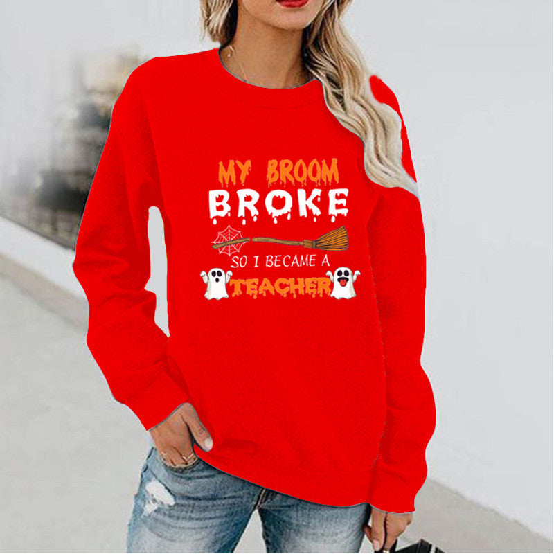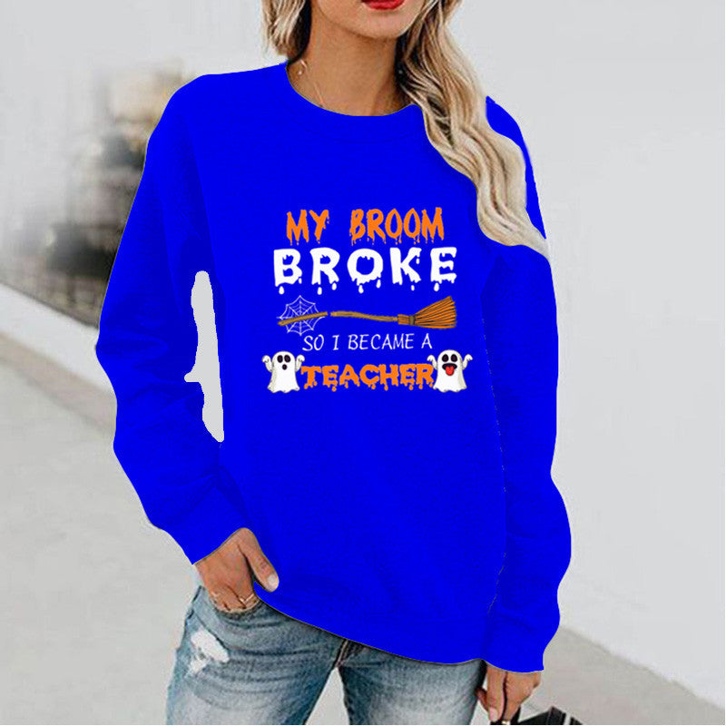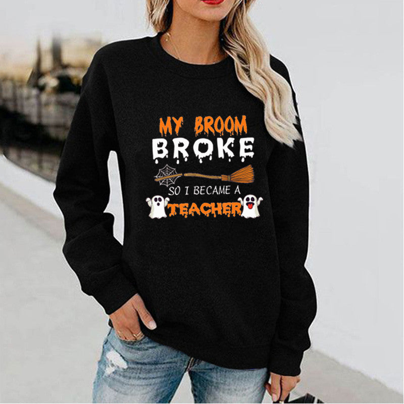 Halloween Costumes Pattern Printed Long Sleeve Capless round Neck Sweater