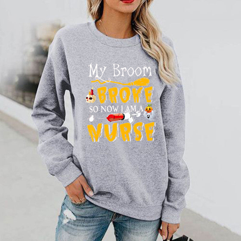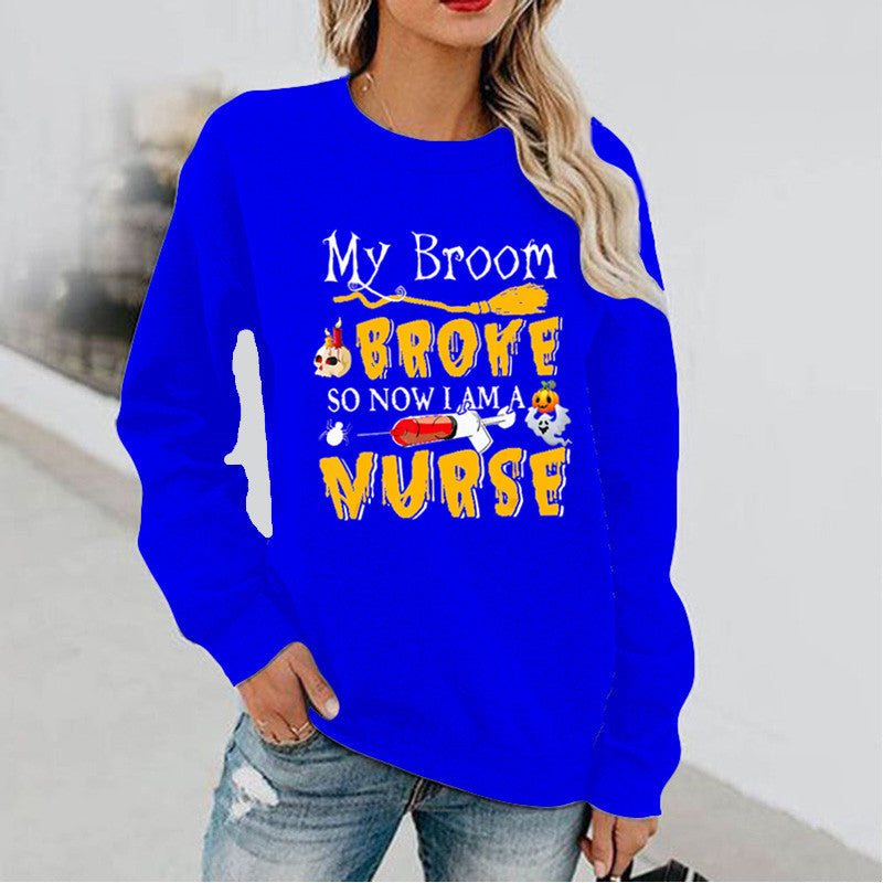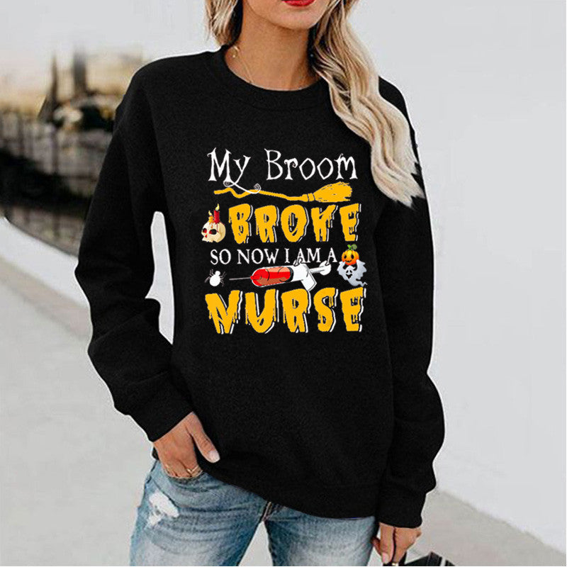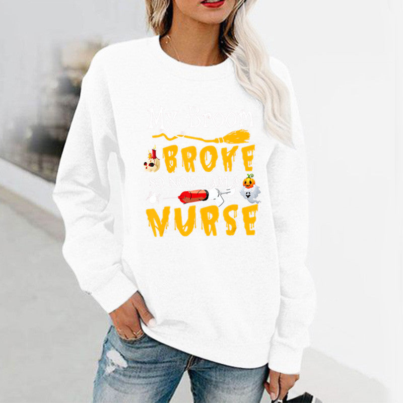 Halloween Costumes Pattern Printed Long Sleeve Capless round Neck Sweater