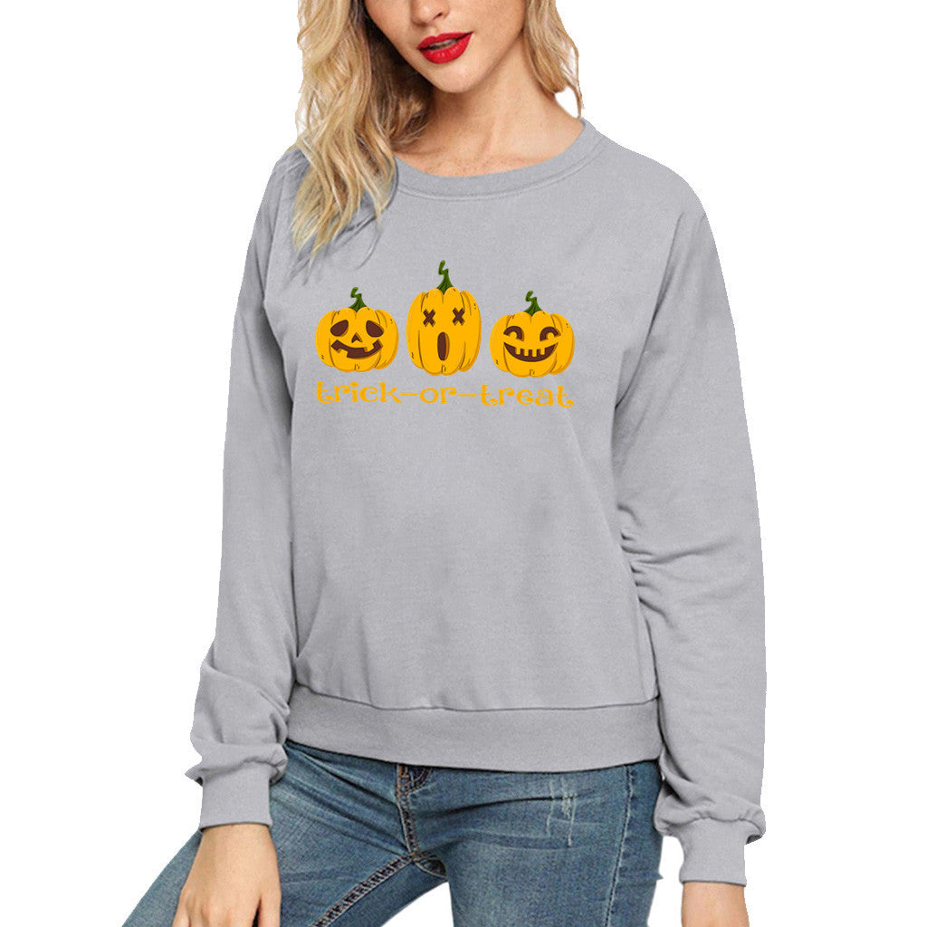 Halloween Costumes Pumpkin Smiley Printed Long Sleeve Capless round Neck Sweater