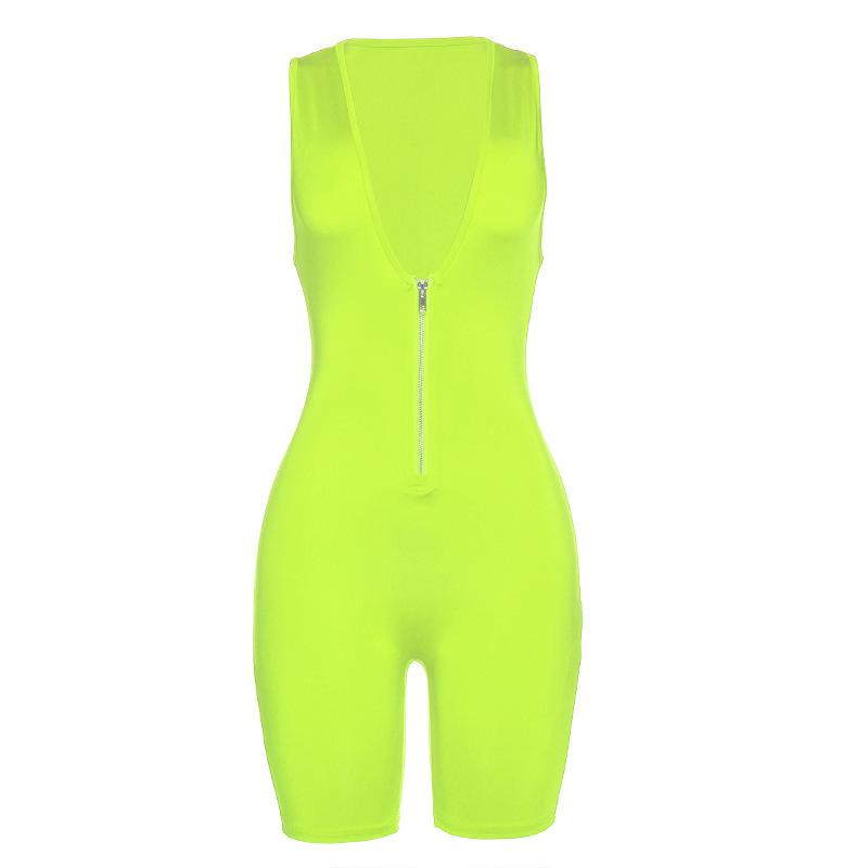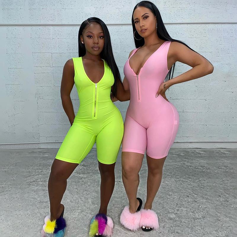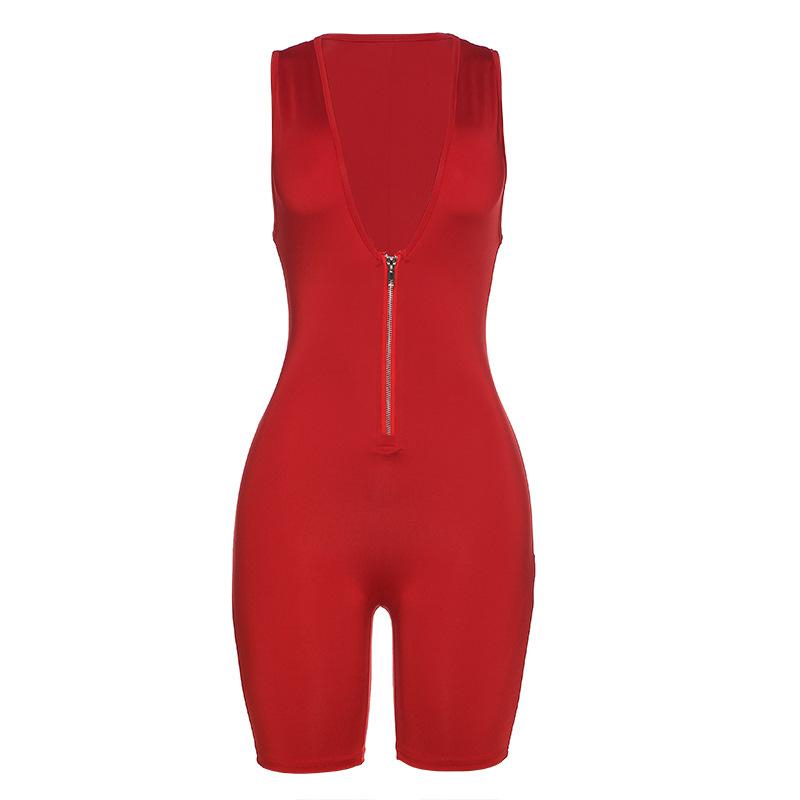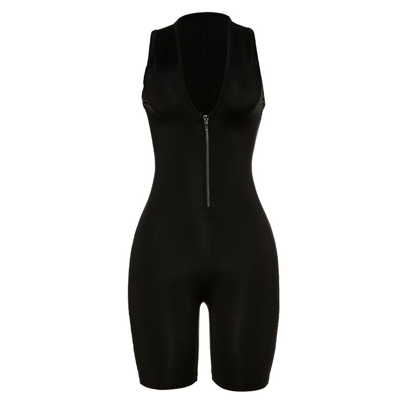 Summer Women's Skinny Hip Raise Zipper One-Piece Shorts