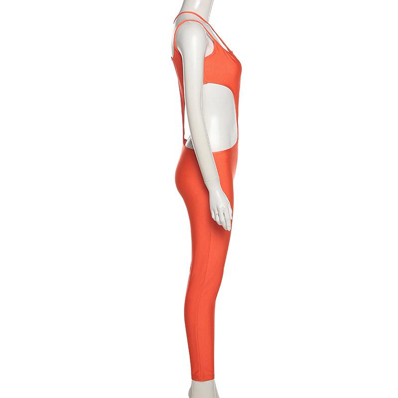 Fall Hollow Backless Sling High Waist Tight Sports Fitness Jumpsuit