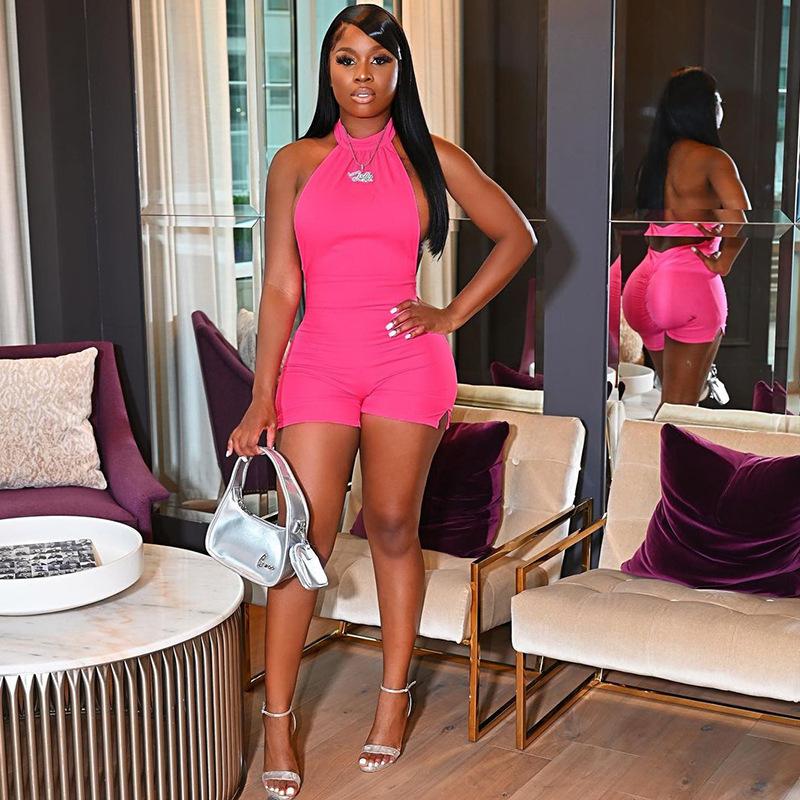 Summer Women's Sexy Backless Sleeveless Halter Sheath Tight Casual Sports Jumpsuit