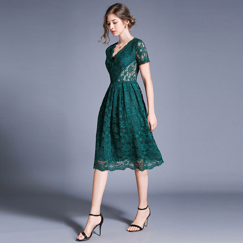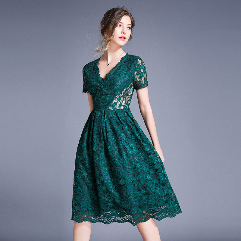 Betty Draper Valentine's Day Dress Women's Summer Lace Short Sleeve V-neck Dress
