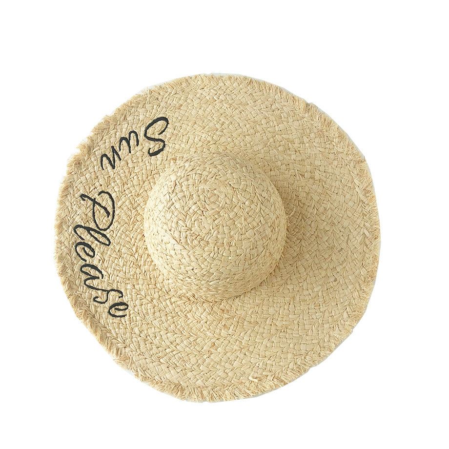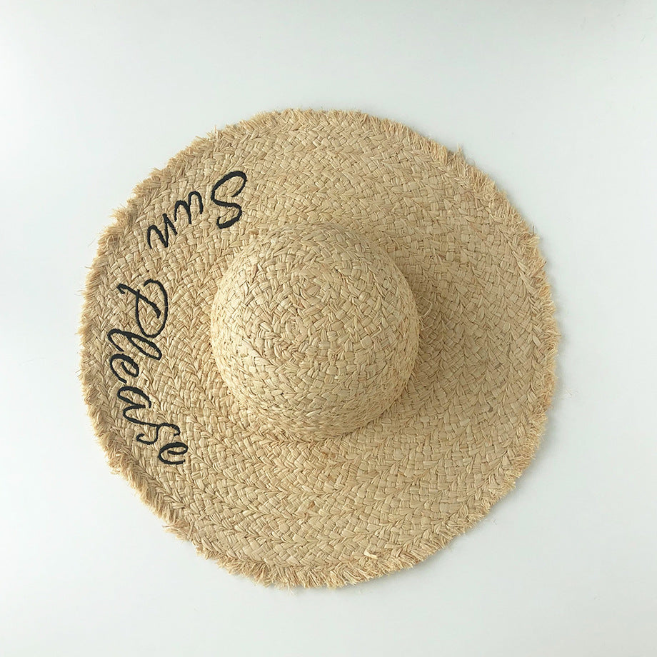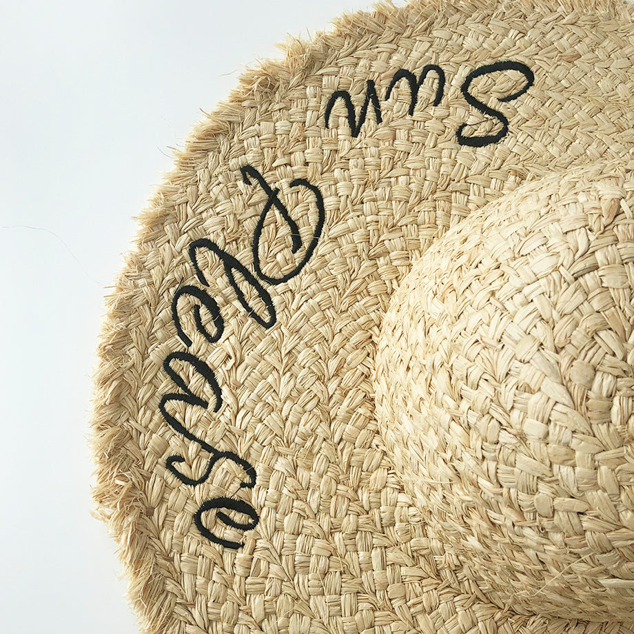 Straw Hat Sunscreen Embroidery Big Brim Beach Hat