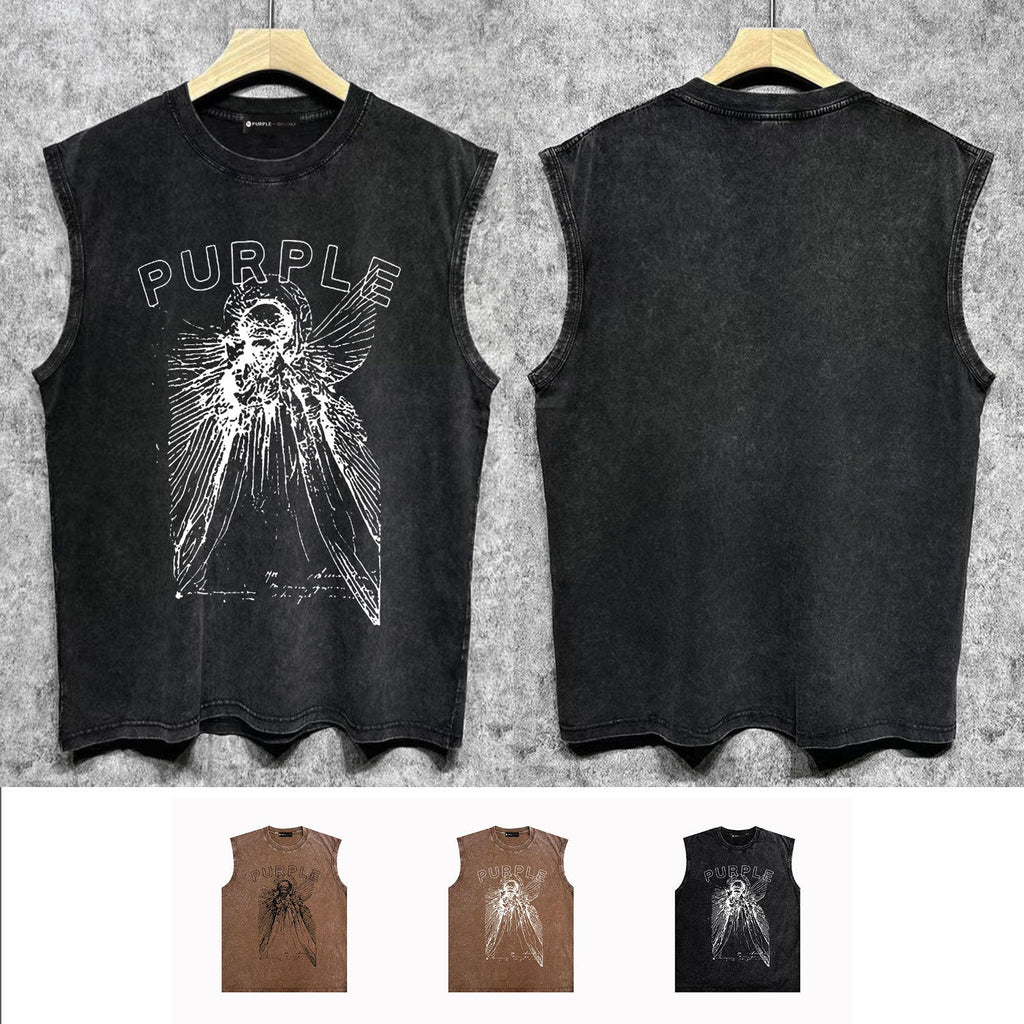 Purple Brand Distressed Tank T Shirts Distressed Sleeveless T-shirt Vest