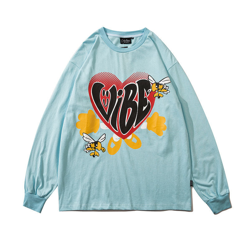 Man Fall Outfits Printed Long-Sleeved T-shirt Men Loose-Fitting Casual round-Neck