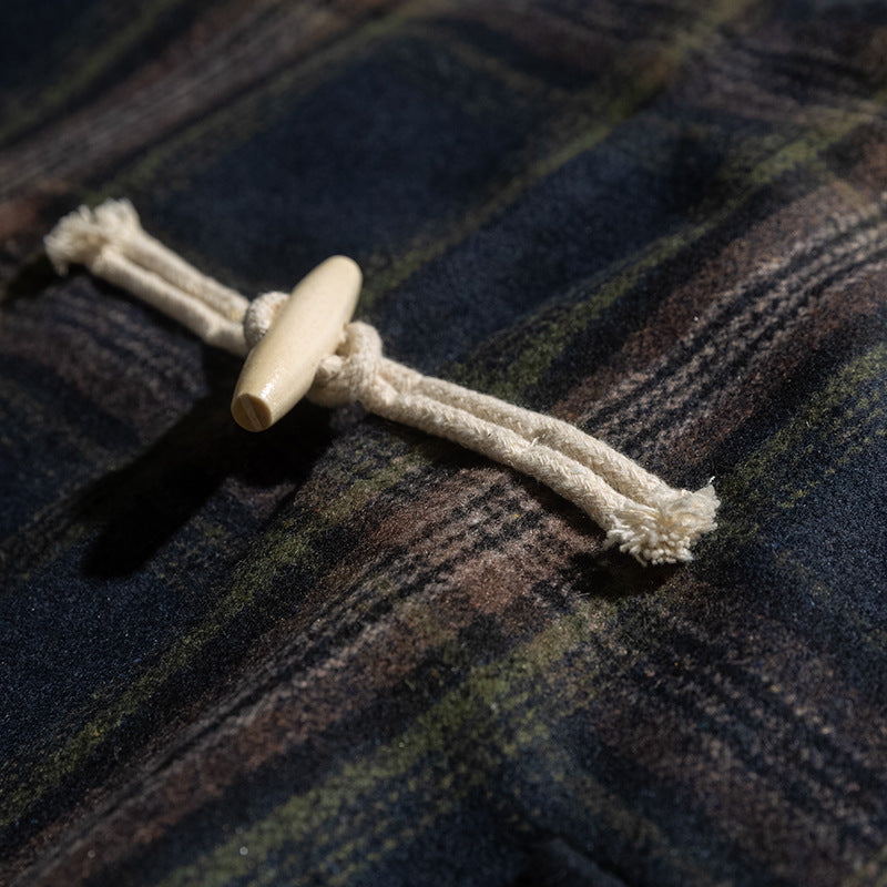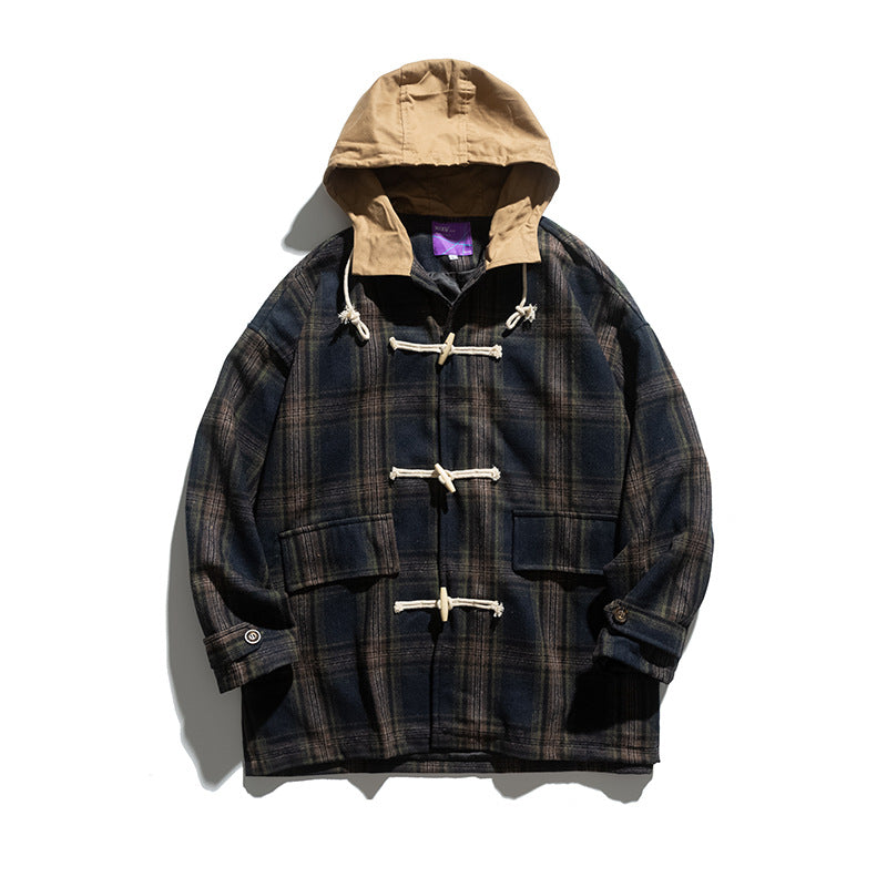 Man Fall Outfis Autumn Loose Hooded Plaid Mid-Length Trench Coat for Boys College Style Casual Coat