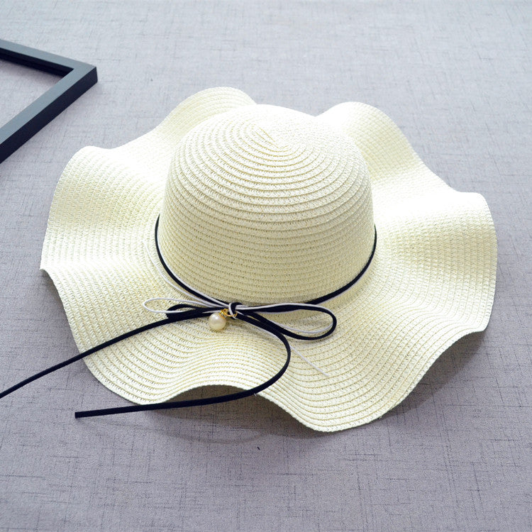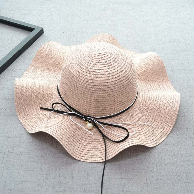Big Hats Bowknot Pearl Spring and Summer Women's Big Brim Beach Hat