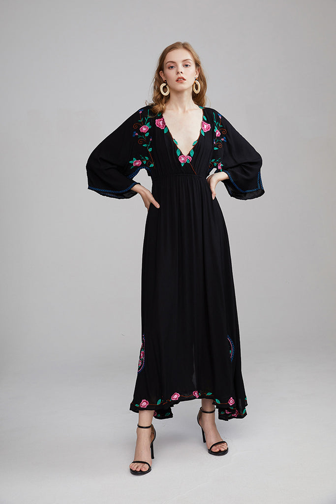 Beth Dutton Bohemian Dress Winter Autumn Midi Dresses Embroidered Maxi Dress