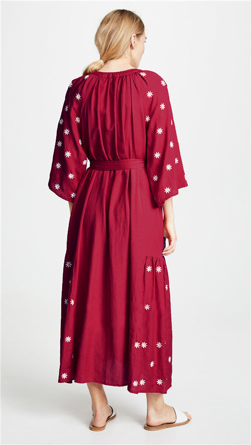 Beth Dutton Bohemian Dress Winter Autumn Midi Dresses Red Sundress Dress
