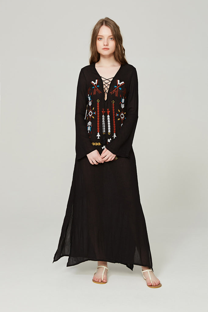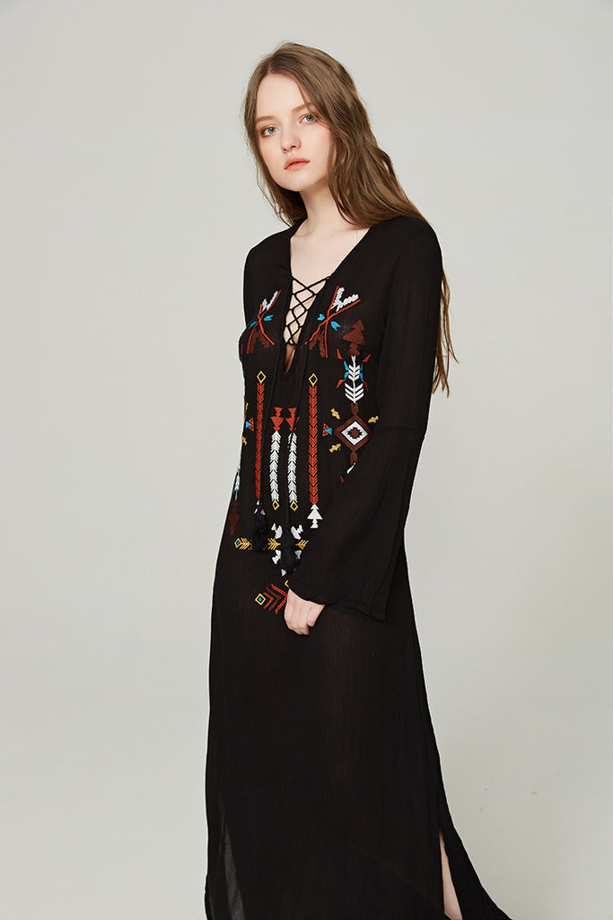 Beth Dutton Bohemian Dress Winter Autumn Midi Dresses Embroidered Maxi Dress