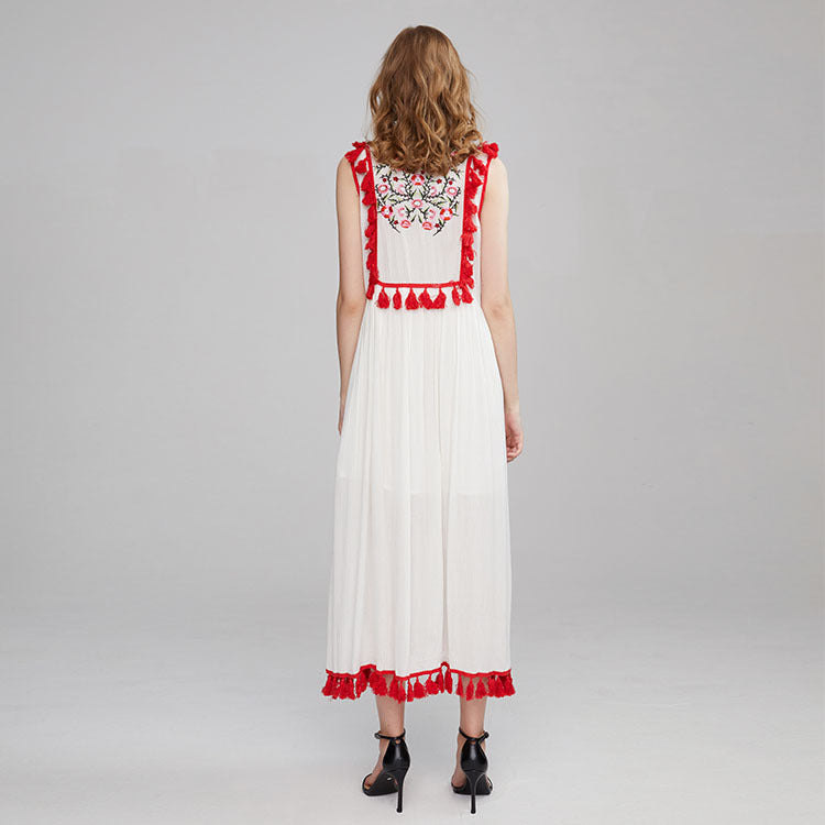 Beth Dutton Bohemian Summer Spring Midi Dress Cross-Border Supply Wish European and American Foreign Trade EBay Bohemian Flower Embroidery Sleeveless Fringe Vest Long Skirt Fashion