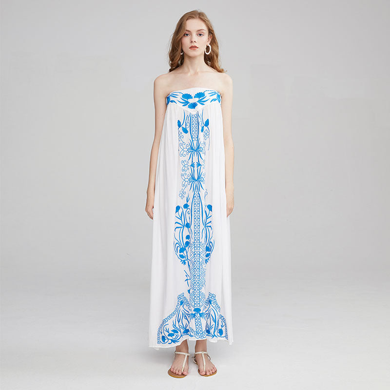 Beth Dutton Bohemian Summer Spring Midi Dress Embroidered Tube Top Dress