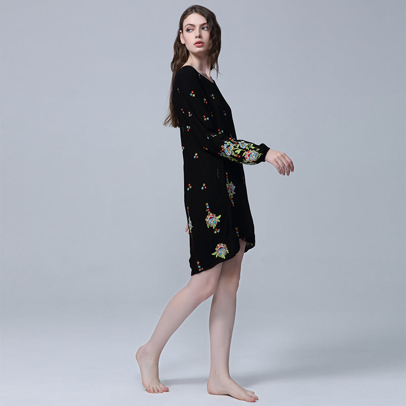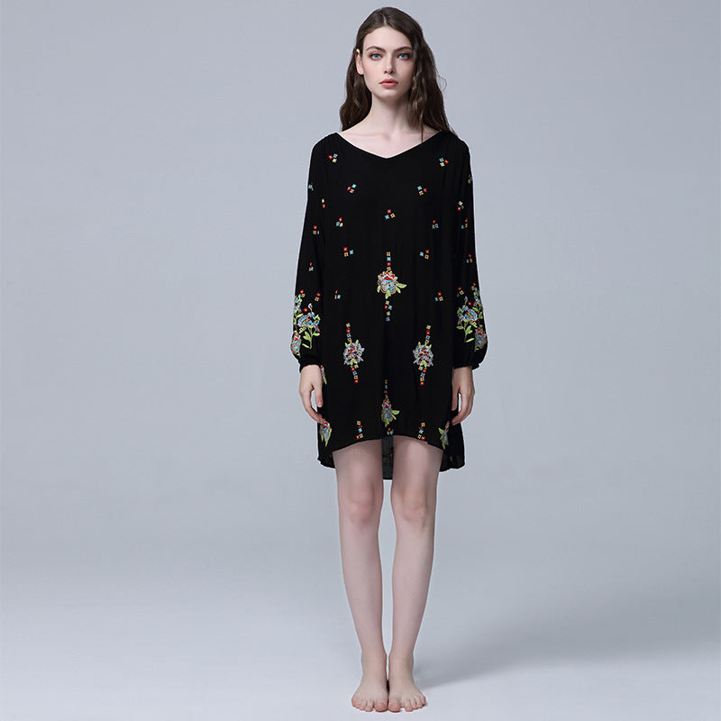 Beth Dutton Bohemian Summer Spring Midi Dress Loose round Neck Embroidery
