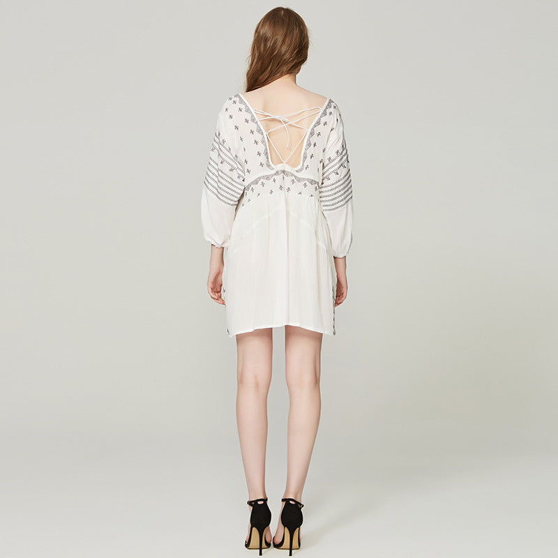 Beth Dutton Bohemian Summer Spring Midi Dress Embroidery Short Dress