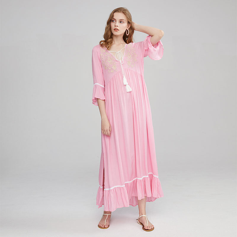 Beth Dutton Bohemian Dress Winter Autumn Maxi Dresses Embroidery Tassel Dress Maxi Dress