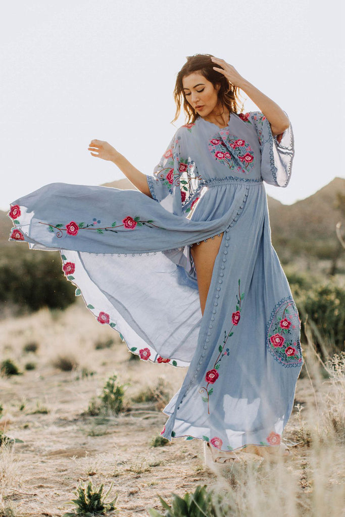 Beth Dutton Bohemian Dress Winter Autumn Maxi Dresses Embroidered Split Elegant Dress