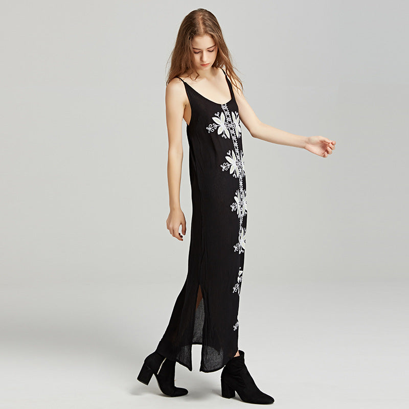 Beth Dutton Bohemian Dress White Embroidered Strap Split Long Dress