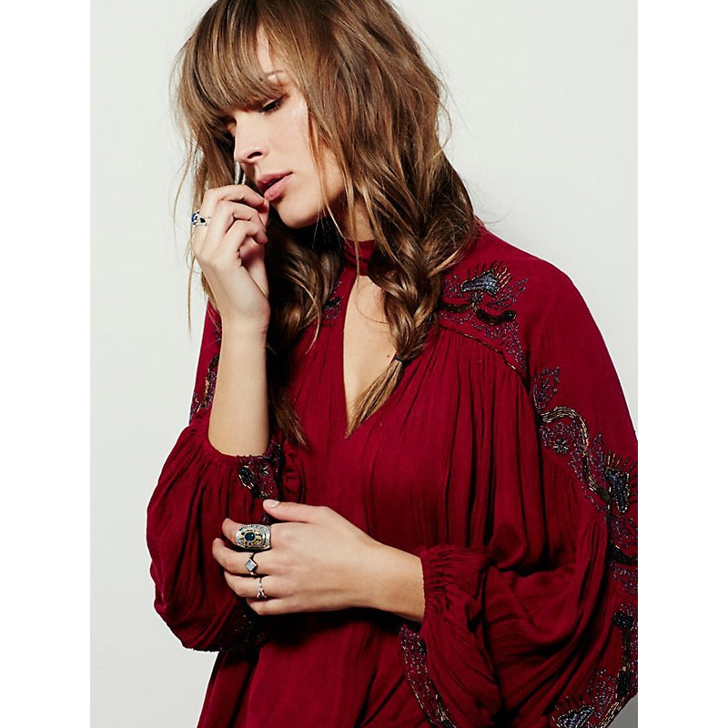 Beth Dutton Bohemian Dress Winter Autumn Maxi Dresses Embroidered Deep V-neck Blouse Embroidered Top