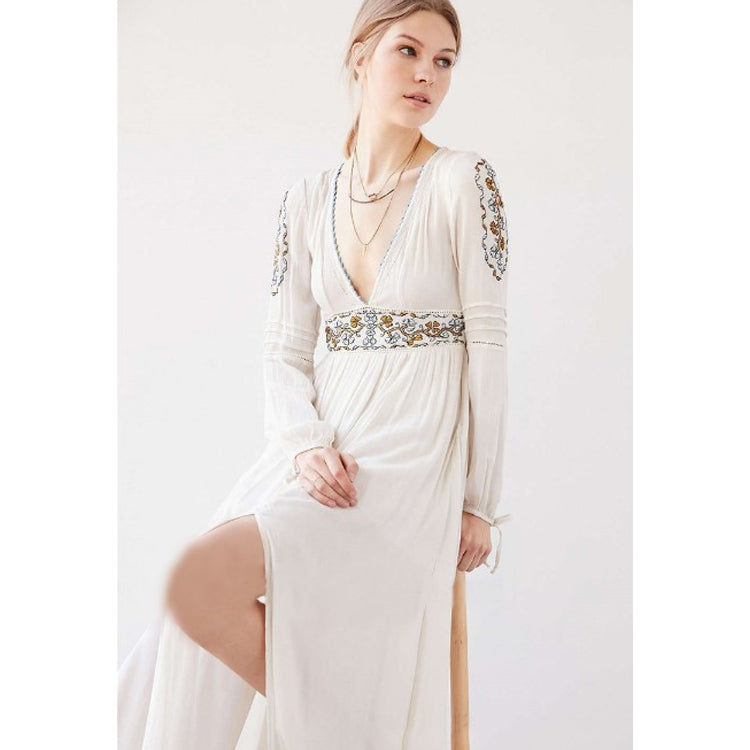 Beth Dutton Bohemian Dress Winter Autumn Maxi Dresses Embroidered Split Dress