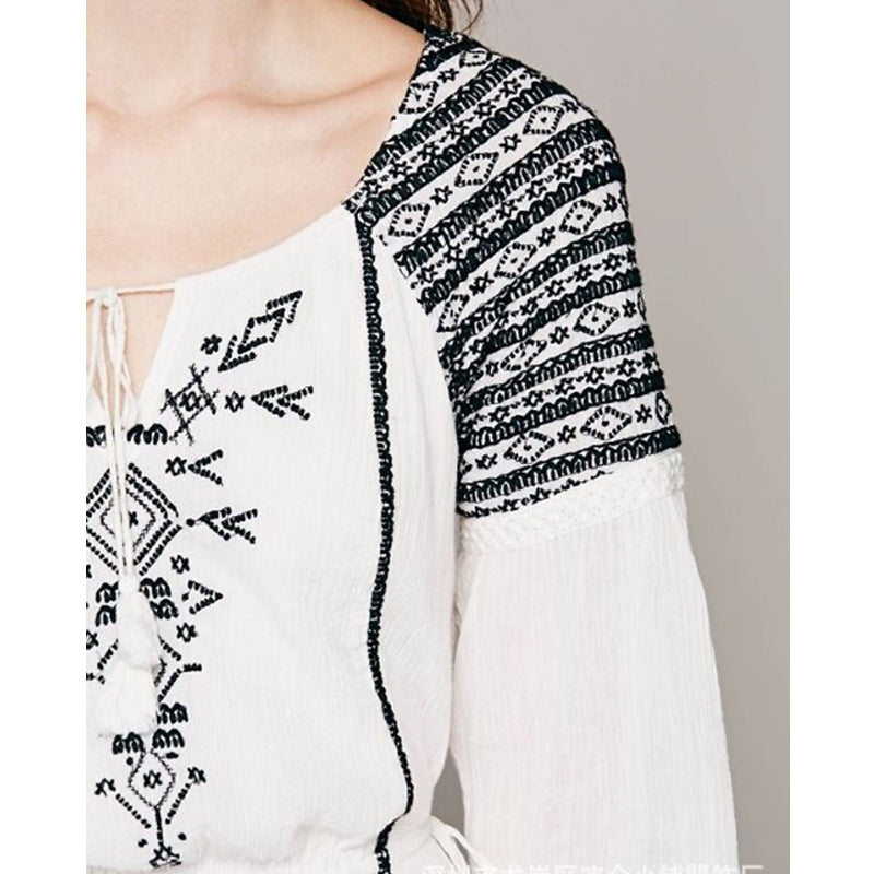 Beth Dutton Bohemian Dress Winter Autumn Maxi Dresses Embroidered White Long Sleeve Tassel