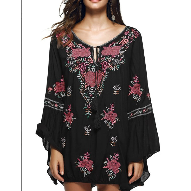 Beth Dutton Bohemian Dress Summer Spring Midi Dress Bell Sleeve Loose Top Shirt Dress