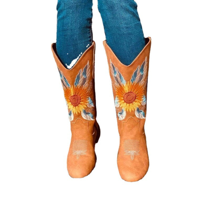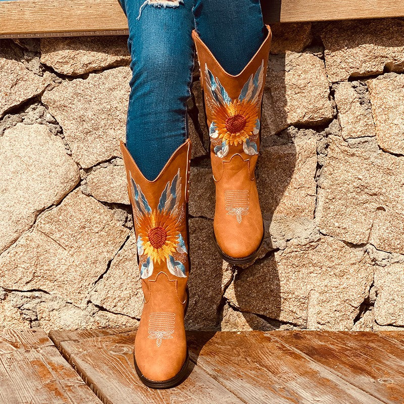 Beth Dutton Shoes Autumn and Winter Women's Embroidered Boots plus Size Sleeve Knight Boots