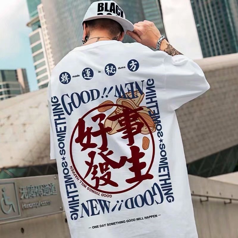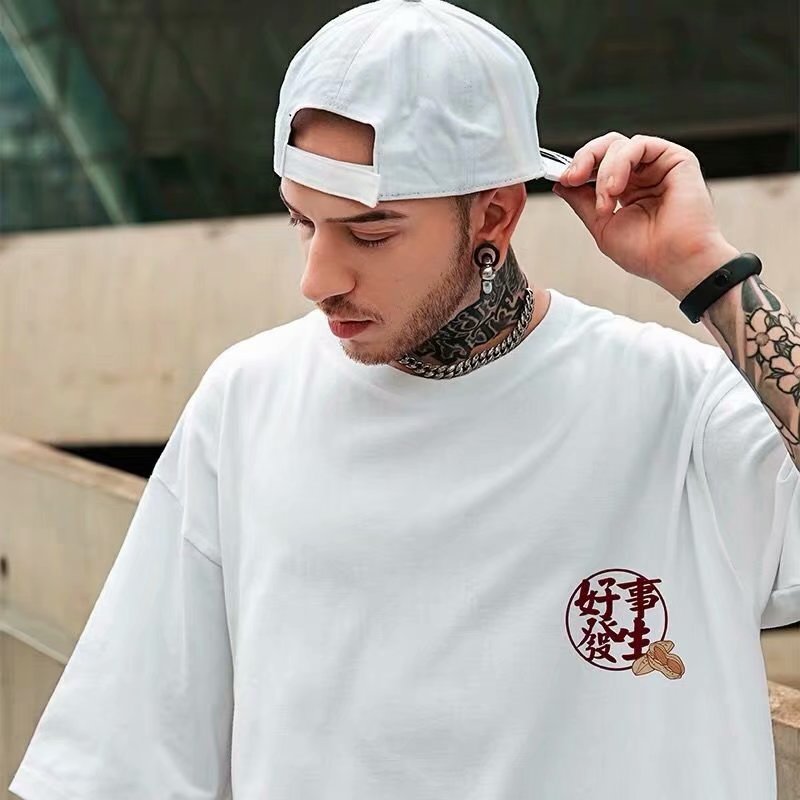 Men T-Shirts Loose Printed Large Half Sleeve