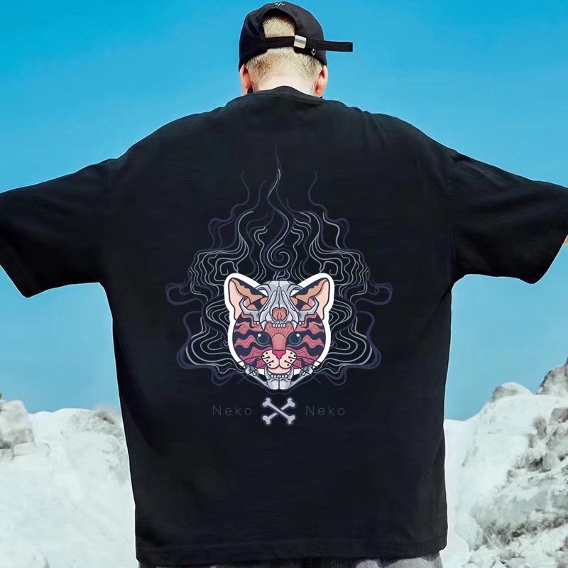 Men T-Shirts Tiger Print Loose Half Sleeve