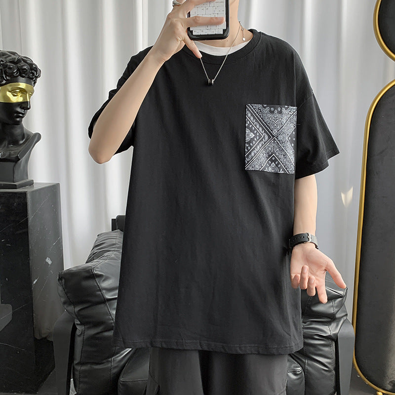 Men T-shirt Paisley Printed Loose Five-Point T-shirt