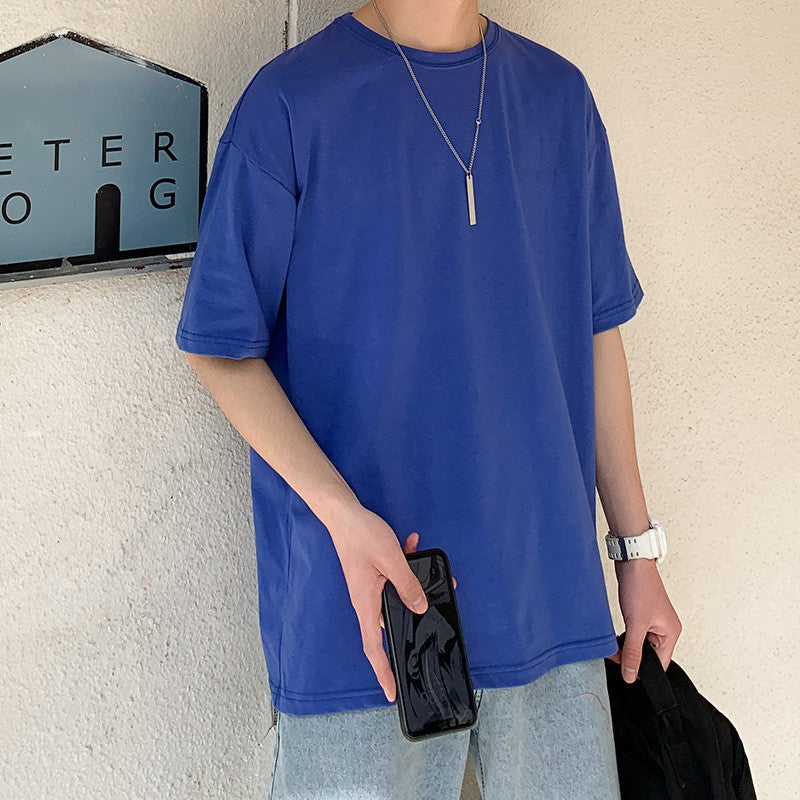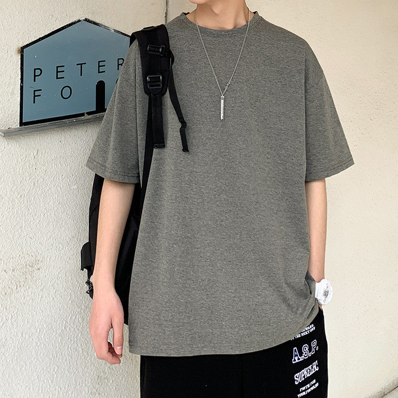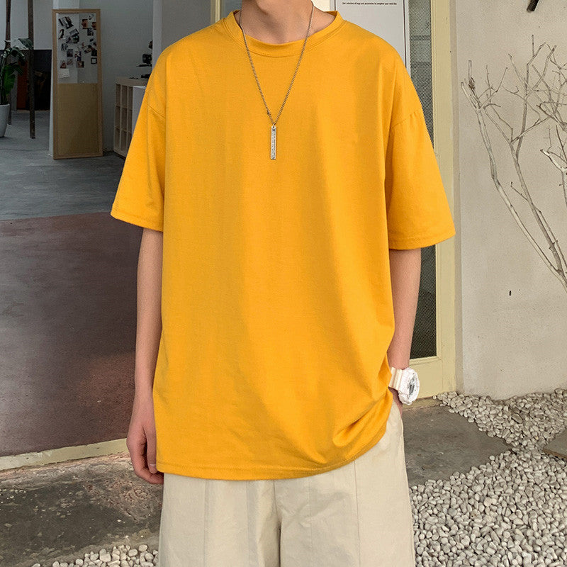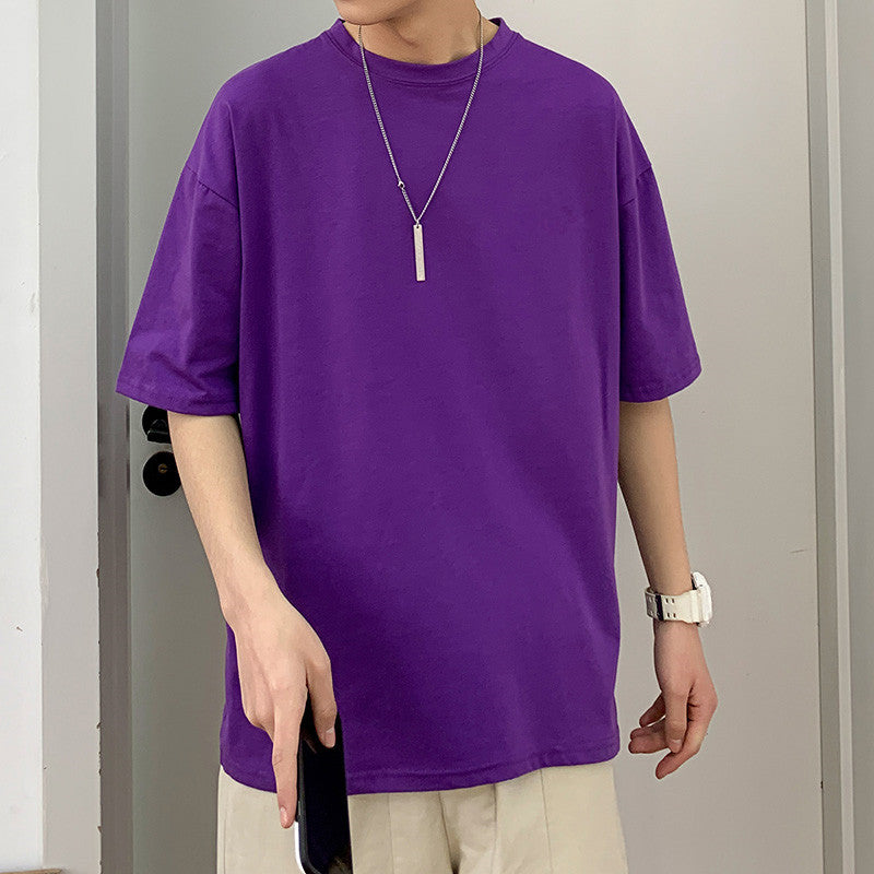Men T-Shirts Half Sleeve Five Points Short Loose Solid Color