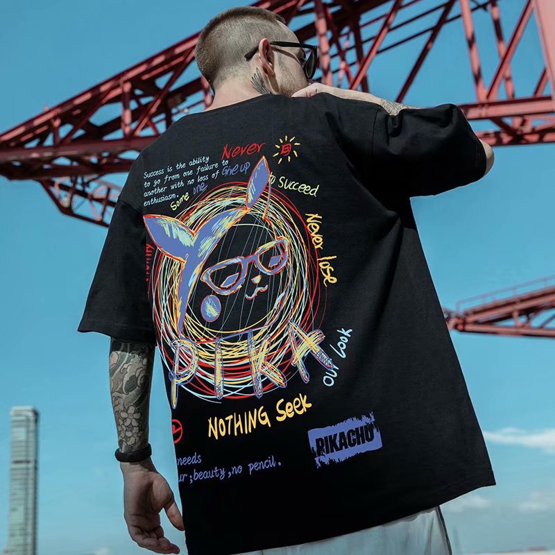Men T-Shirts Loose Half Sleeve Print