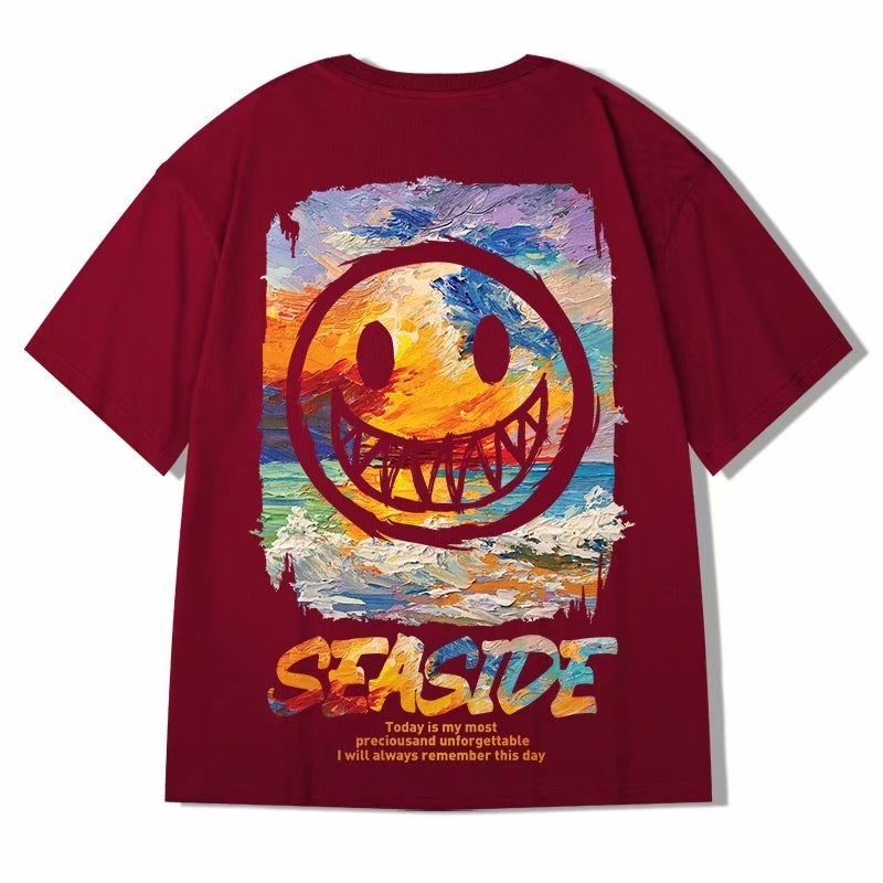 Men T-Shirts Loose round Neck Half Sleeve Print