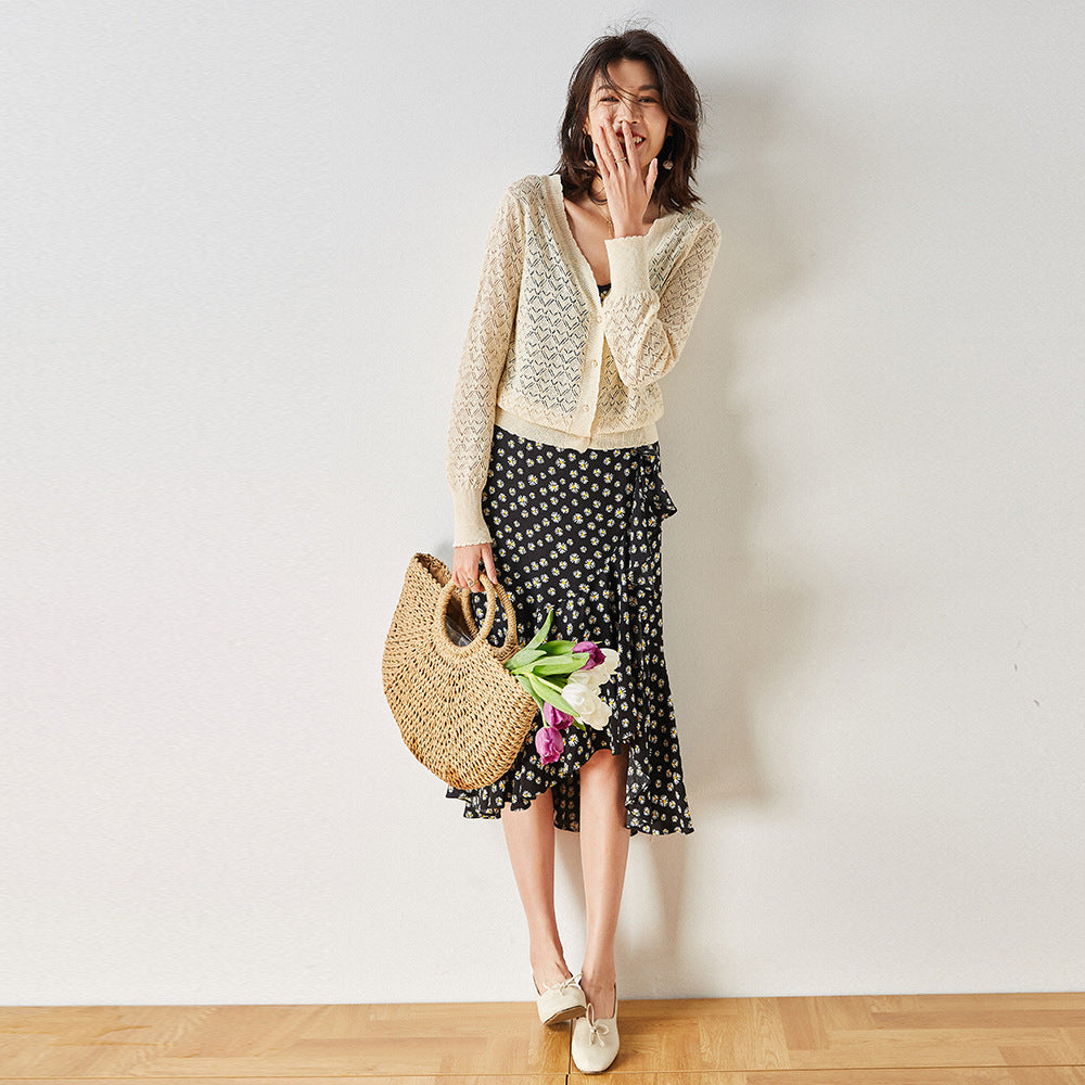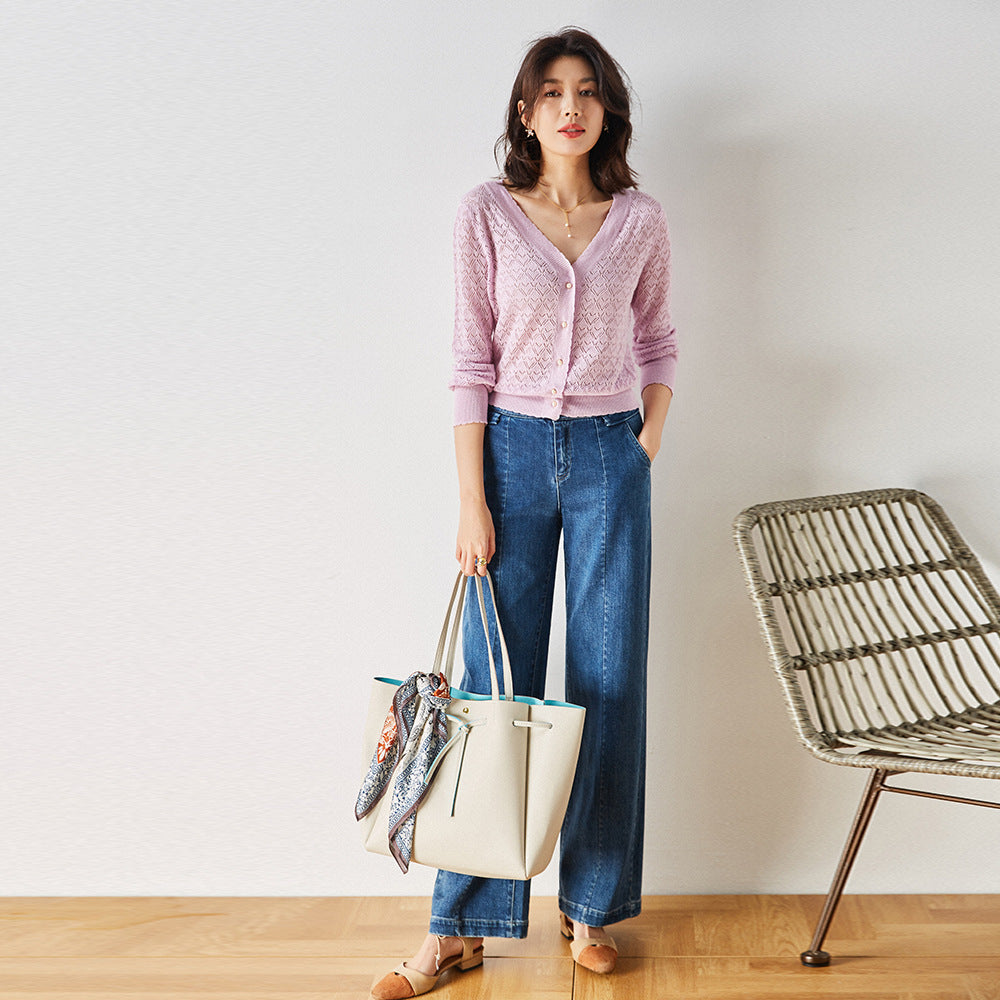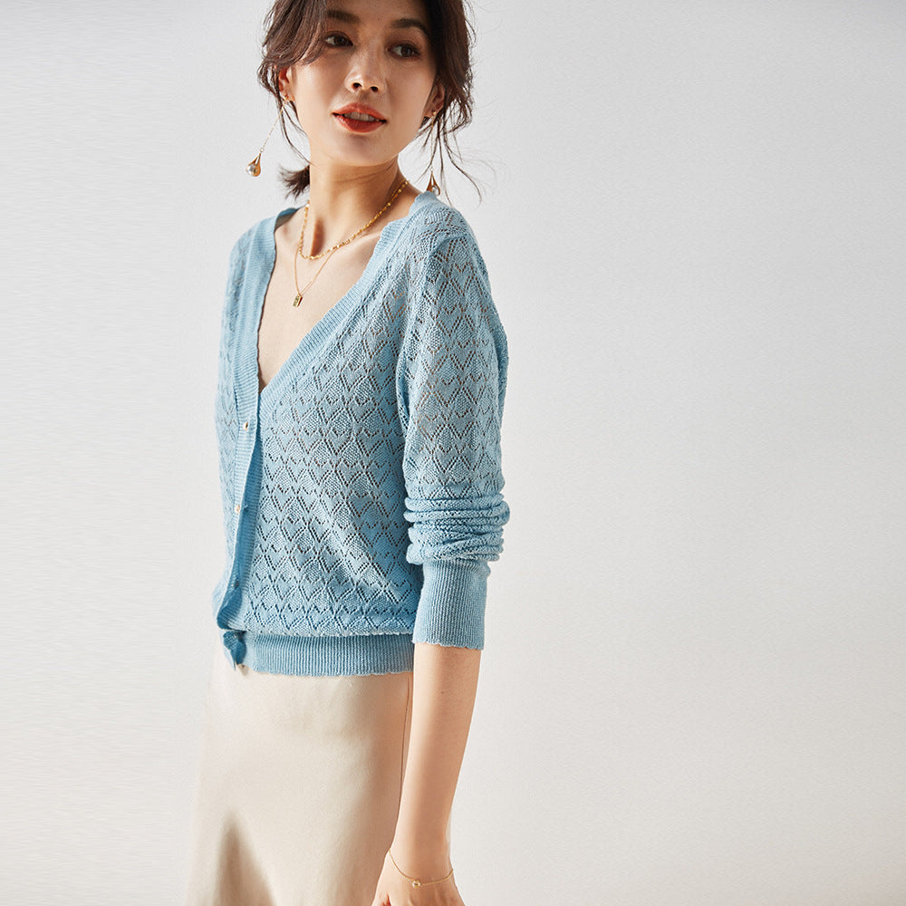 Gloria Vanderbilt V-neck Grandma Shirt Sun Protection Hollow-out Long Sleeve