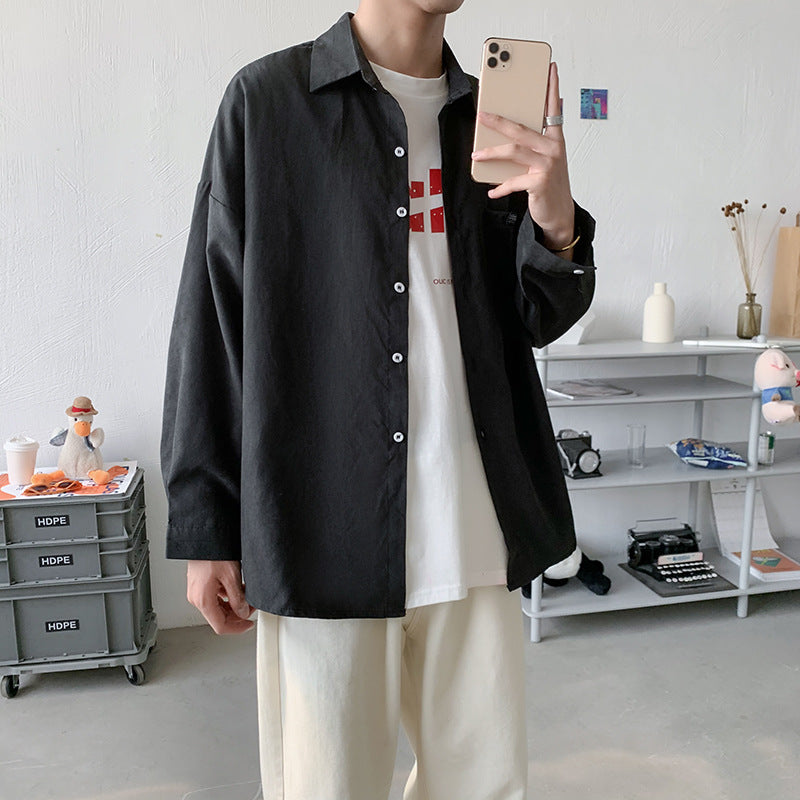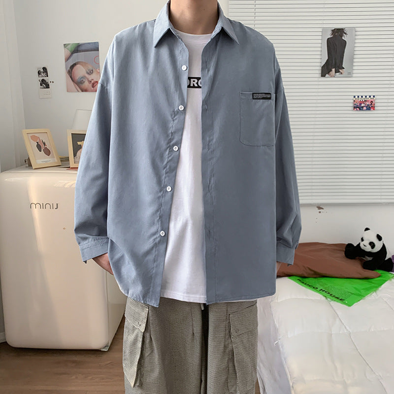 Men Shirts Hong Kong Style Shirt Long Sleeve Loose