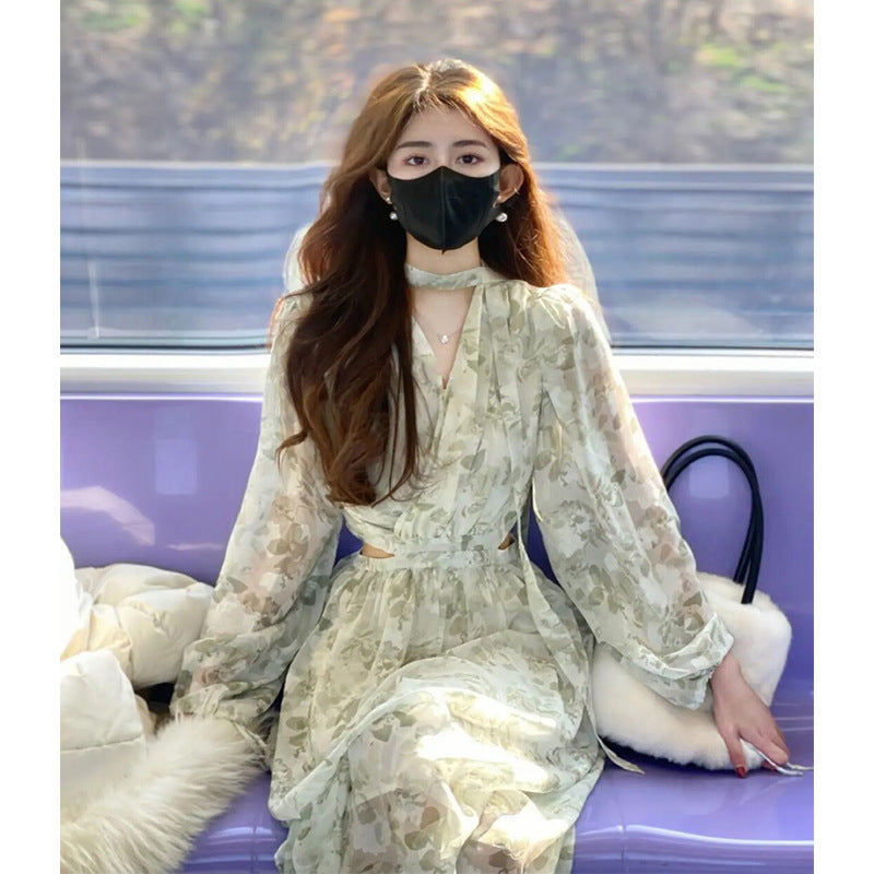 Regency Dress V-neck Chiffon Floral Dress