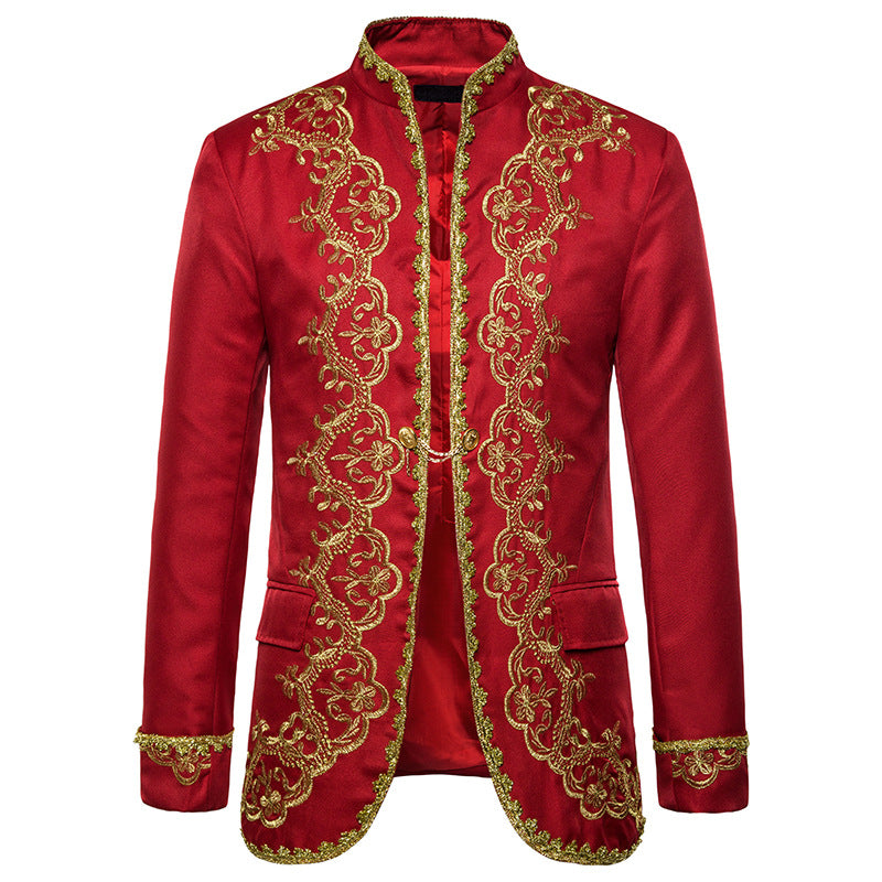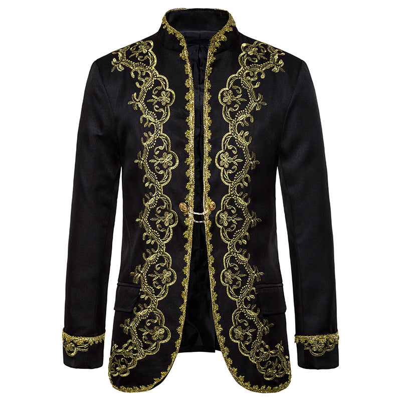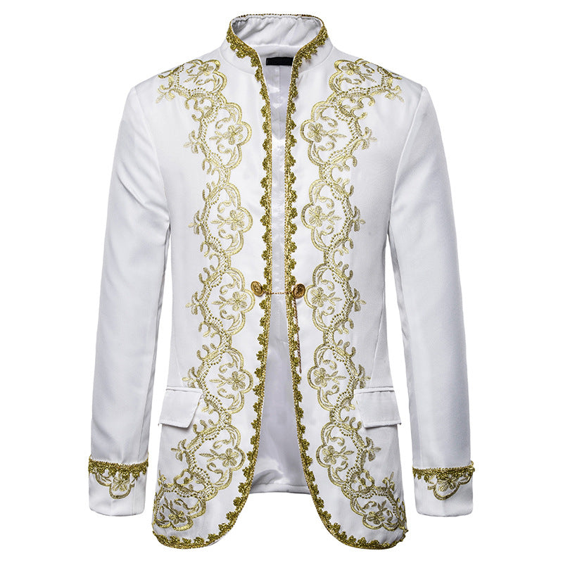 Men Prom Outfits Gold Inlaid Gown Court Dress Studio Clothing