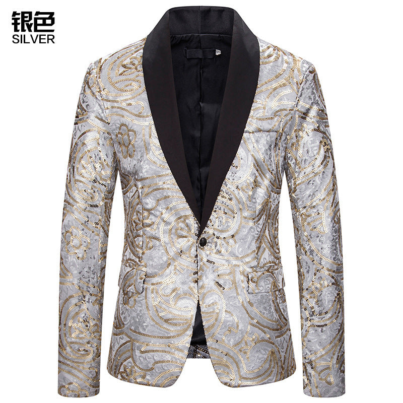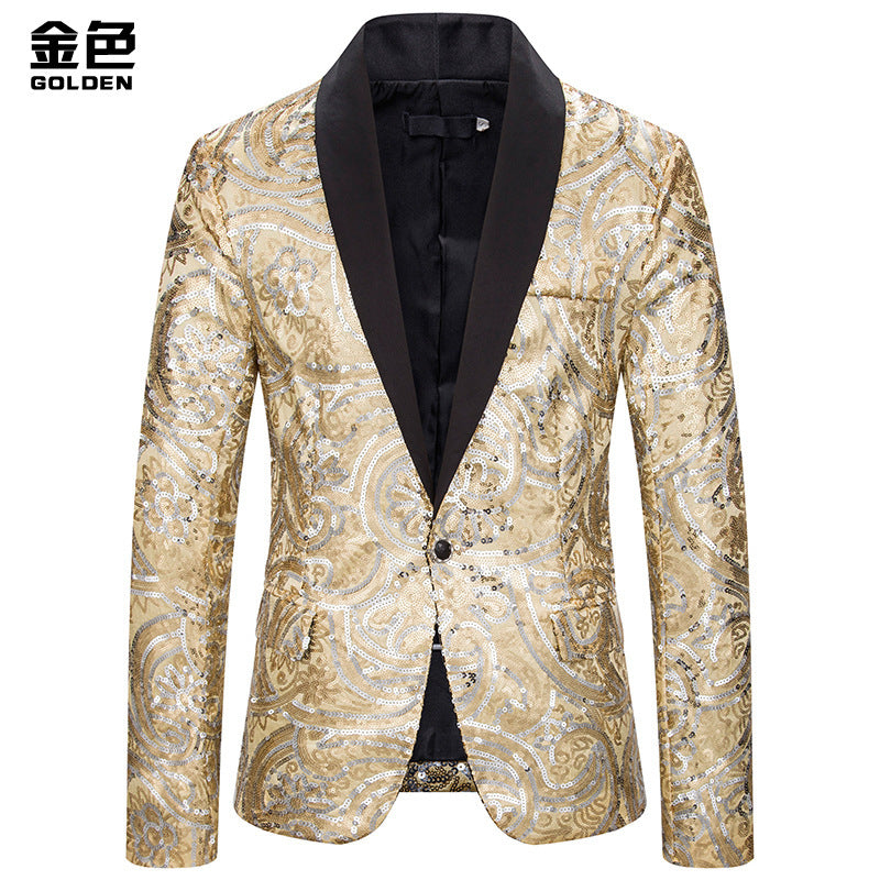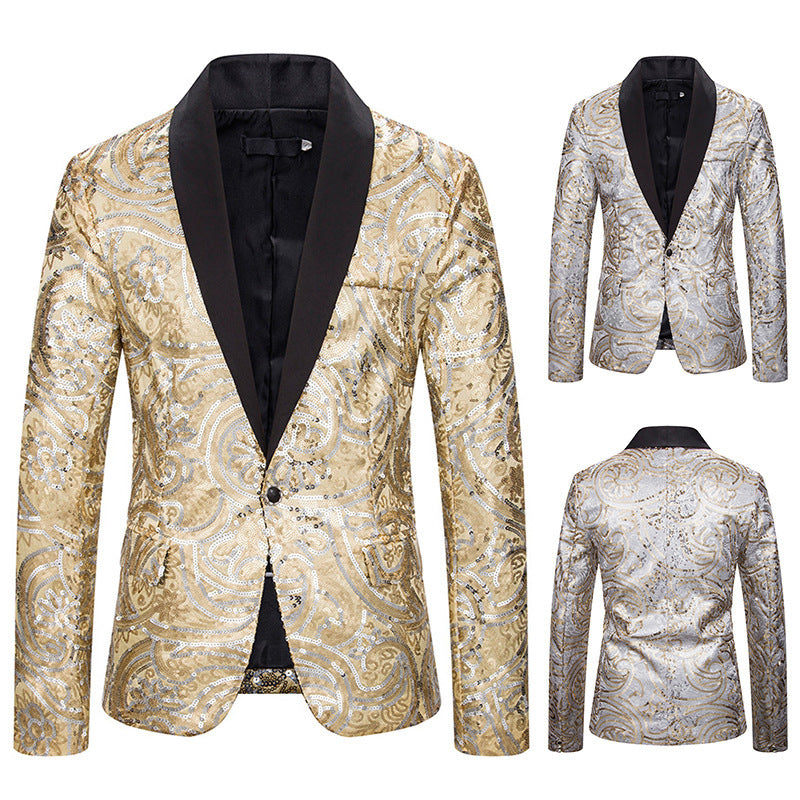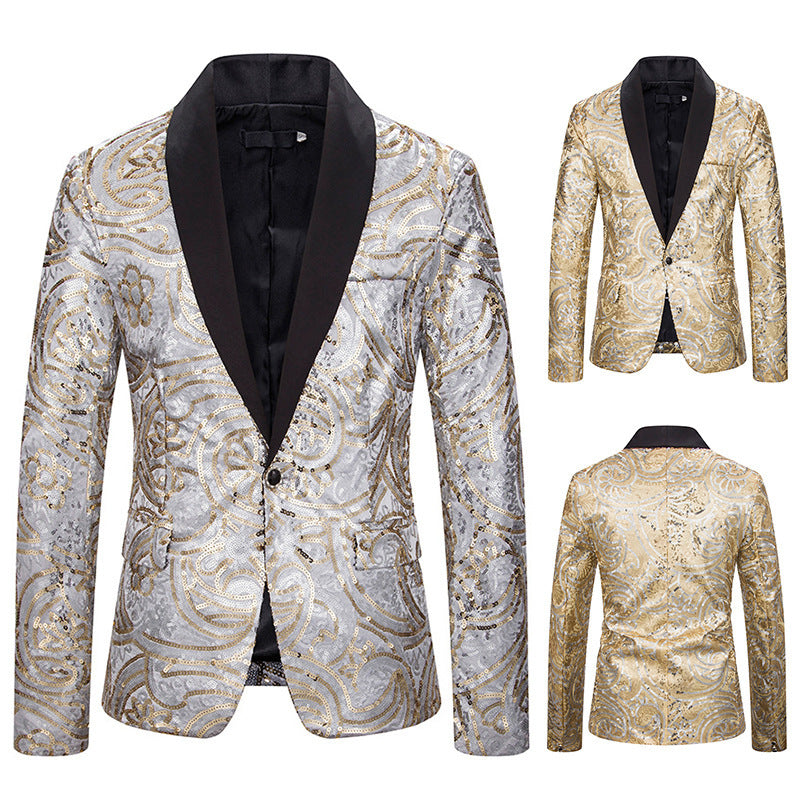 Men Prom Outfits Sequined Performance Dress Suit Nightclub