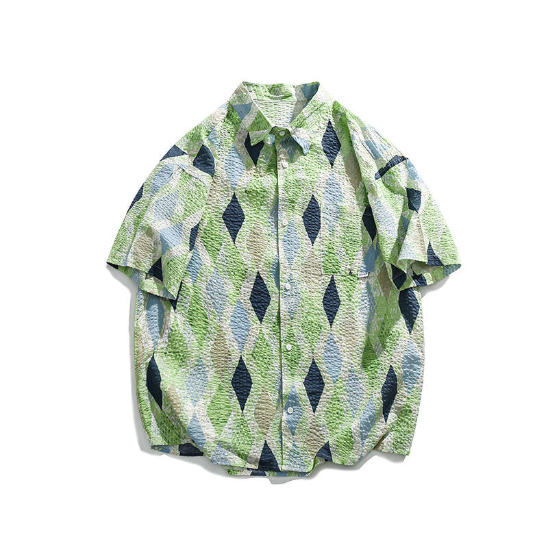 Men T Shitrs Diamond Lattice Color Matching Printing Lapel