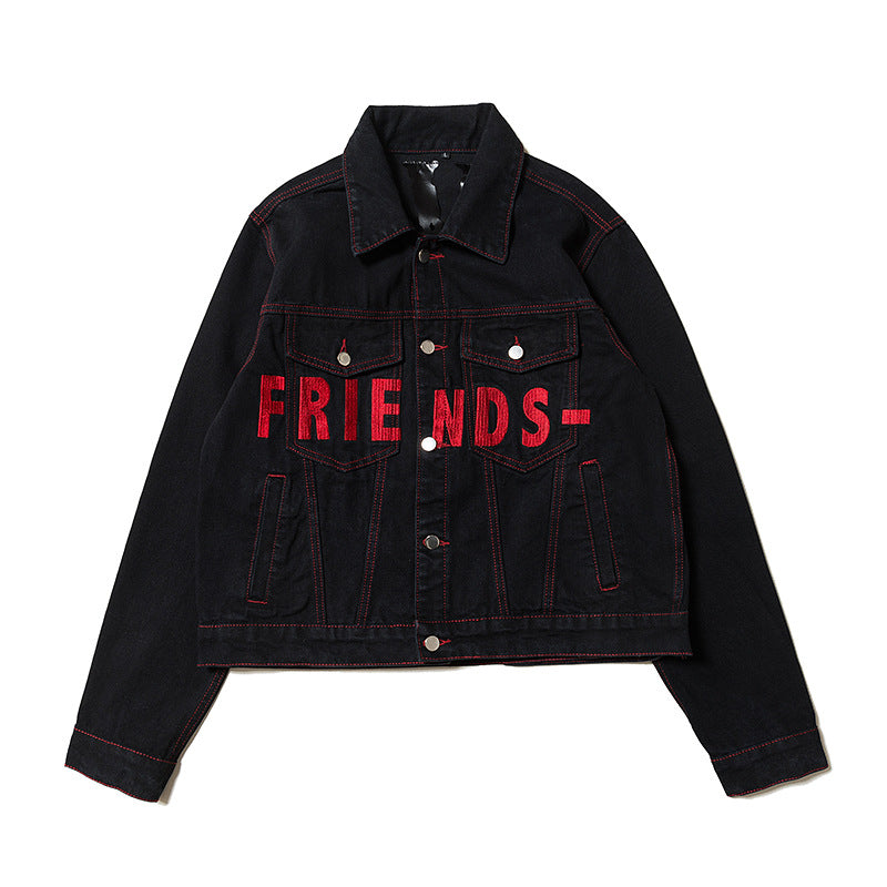 Vlone Jean Jacket Letter Print Large V Denim Casual Jacket