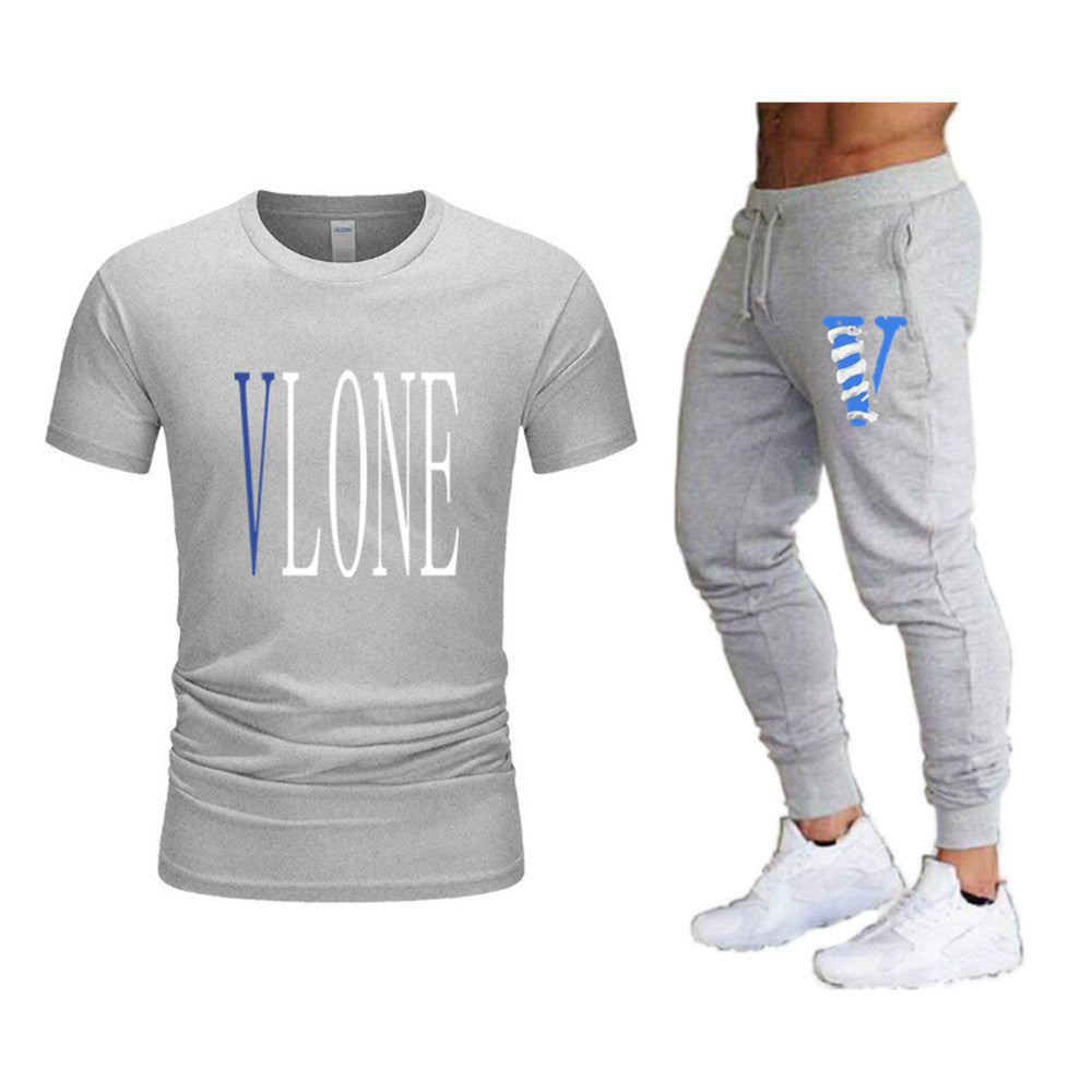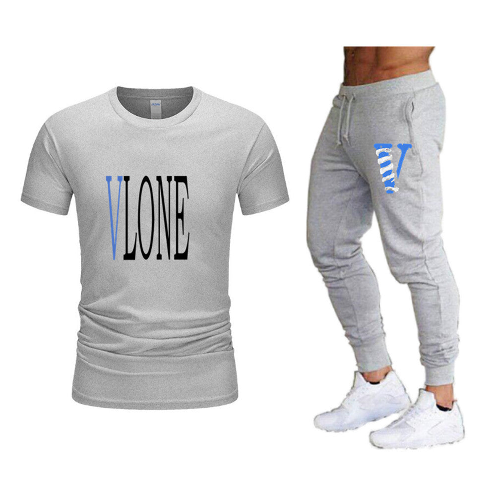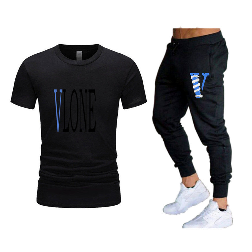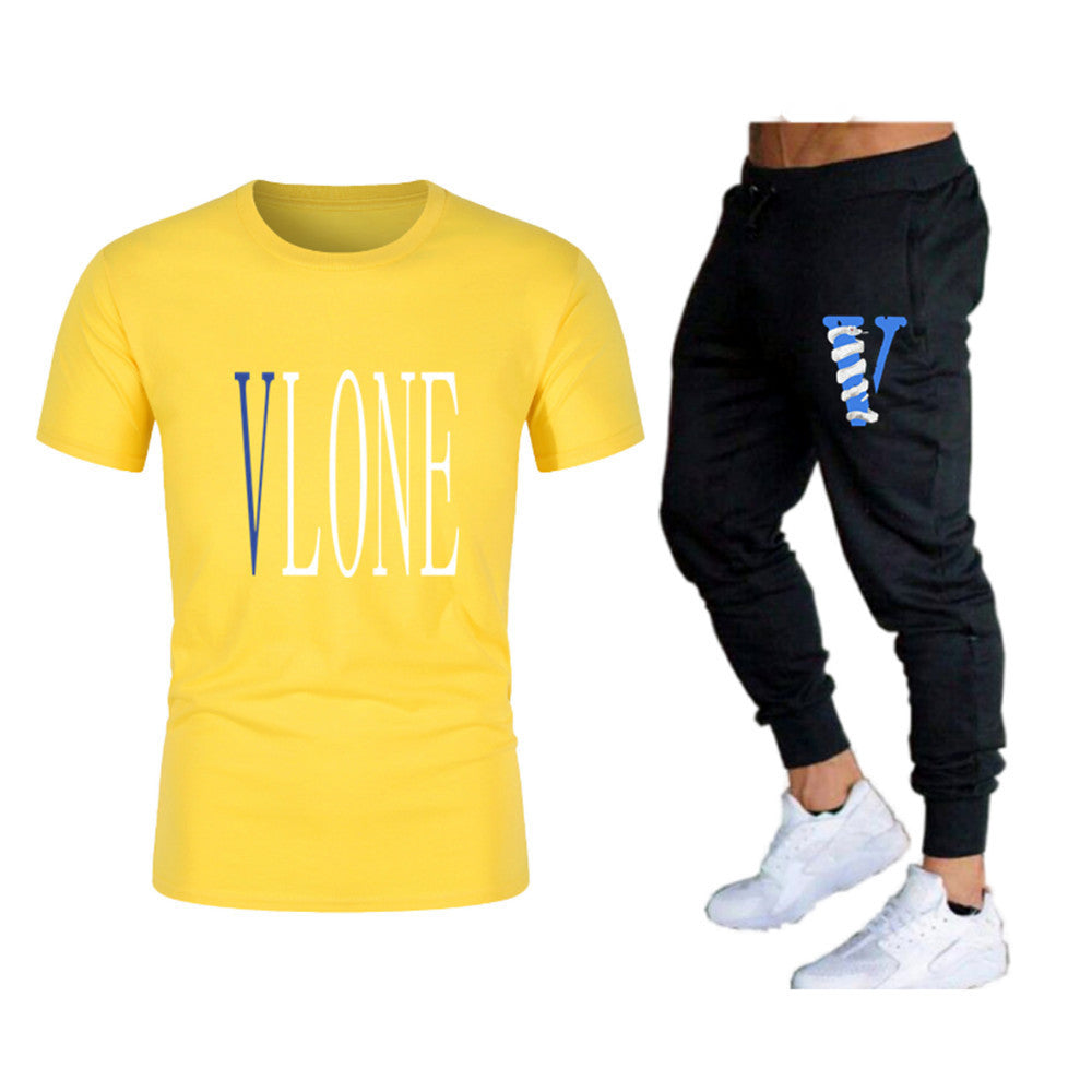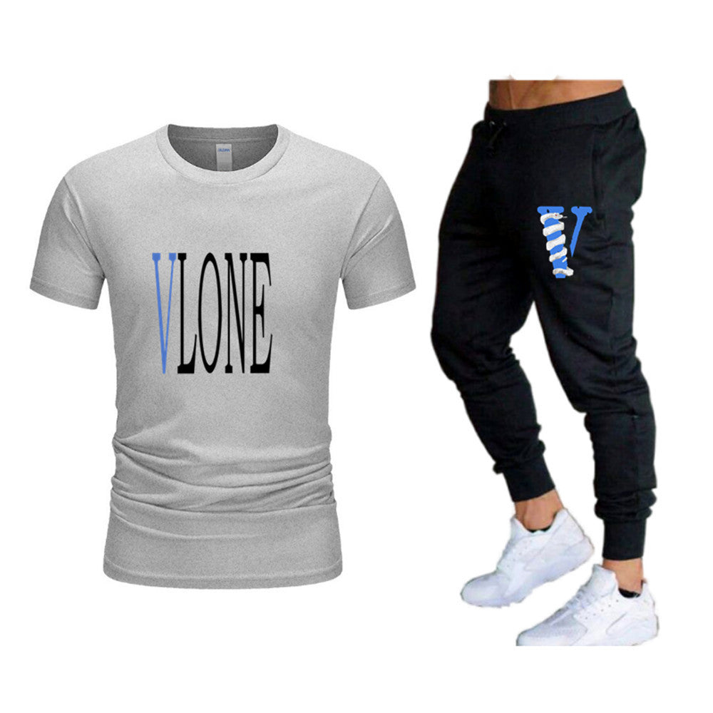 Vlone T Shirts & Pants 2 Piece Set Men'S Suit Summer T-Shirt Short Sleeve Trousers Sports And Leisure