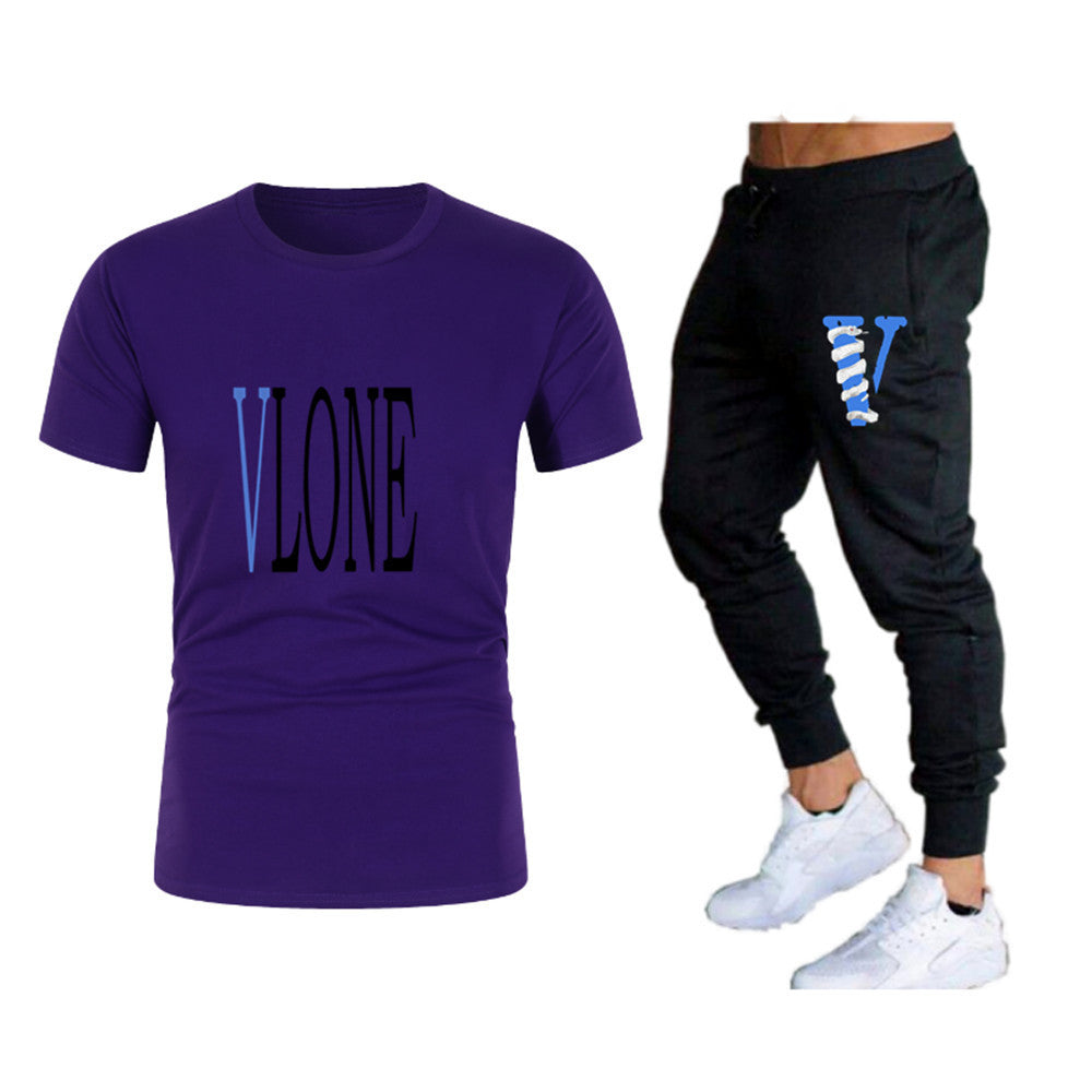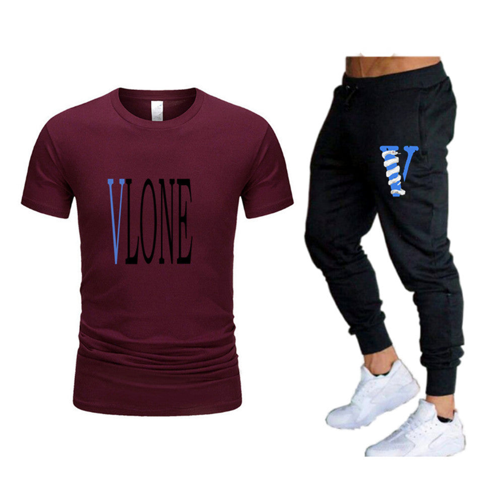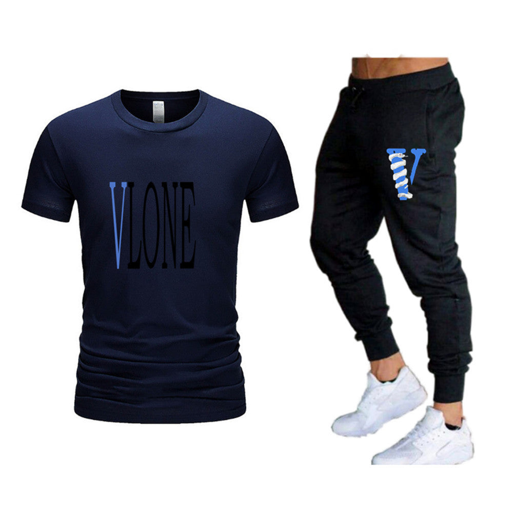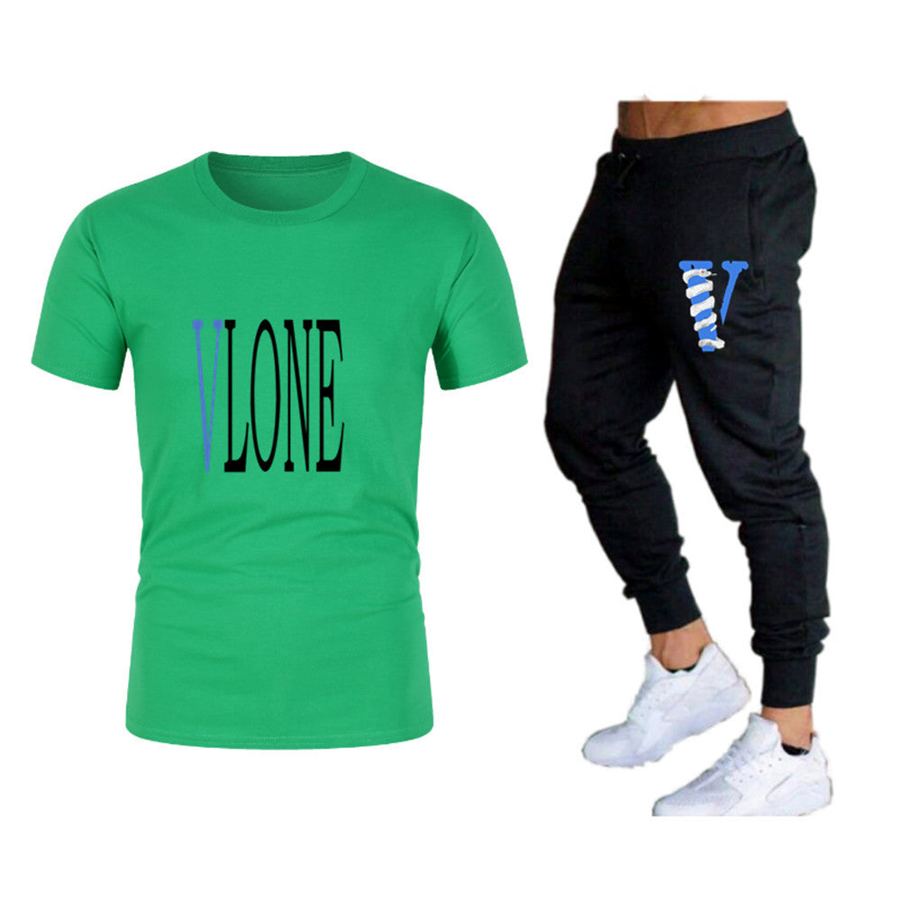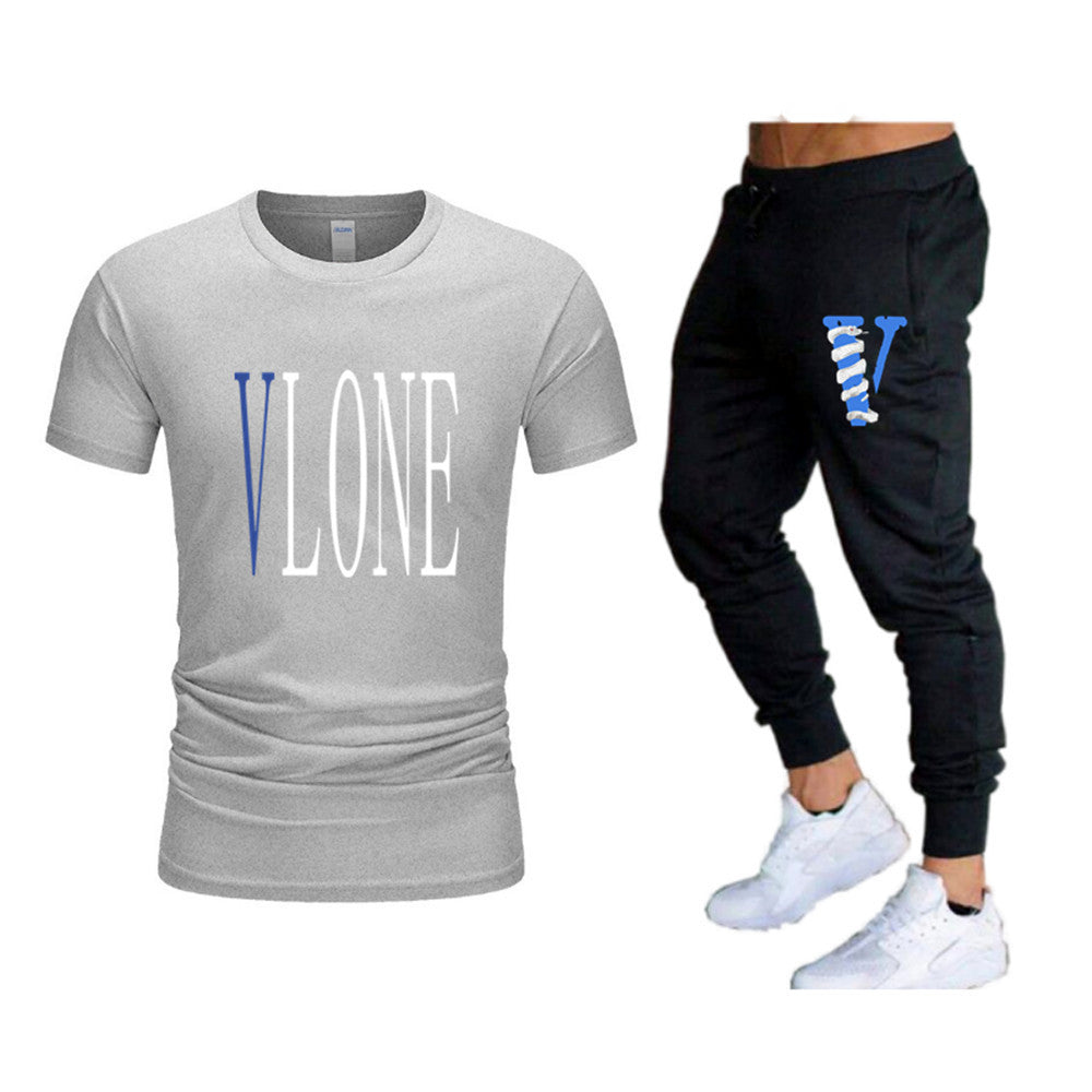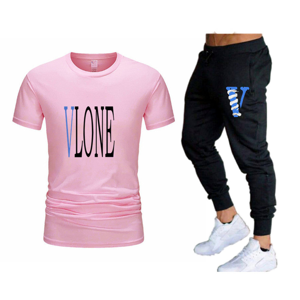 Vlone T Shirts & Pants 2 Piece Set Men'S Suit Summer T-Shirt Short Sleeve Trousers Sports And Leisure