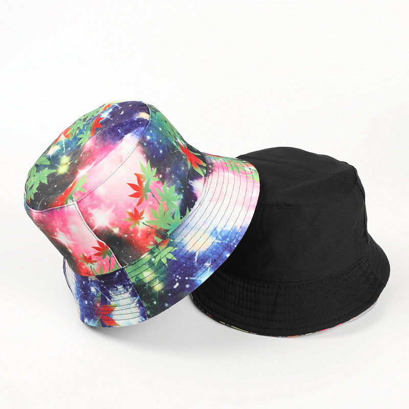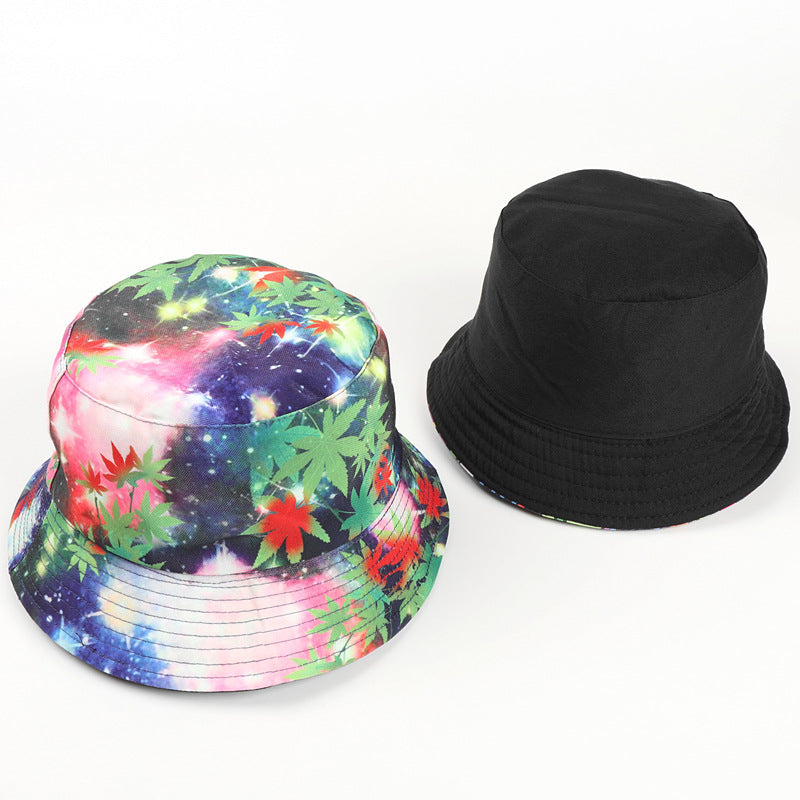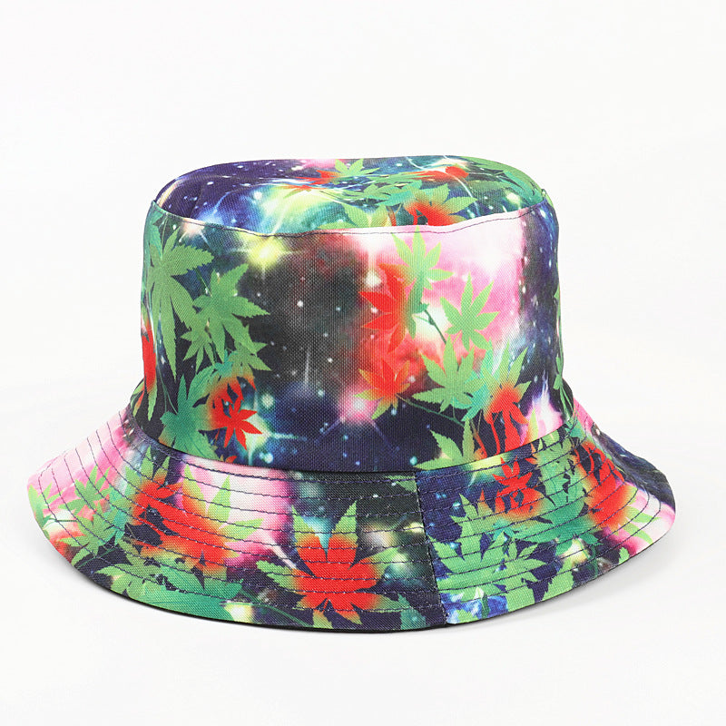 Bucket Hat Fishing Cap Cotton Print Fisherman Hat Men and Women Street Graffiti Hemp Leaf Print Sun Hat