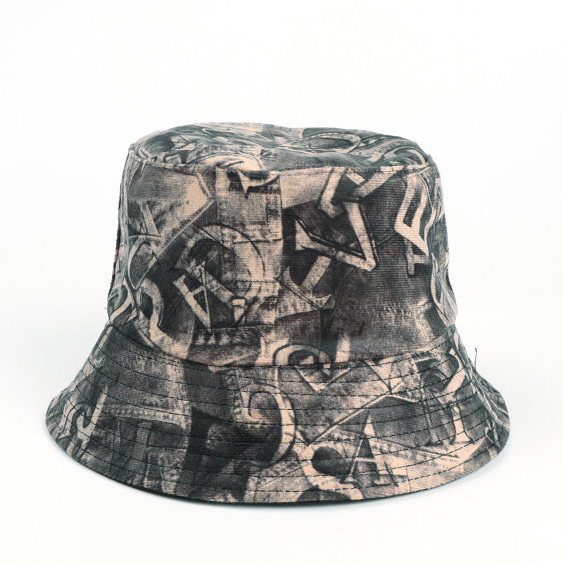 Bucket Hat Fishing Cap Cotton Print Fisherman Hat Letter Print Sun-Proof Basin Hat