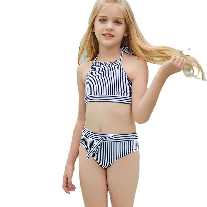 Children Swimsuit Striped Halter Backless Girl