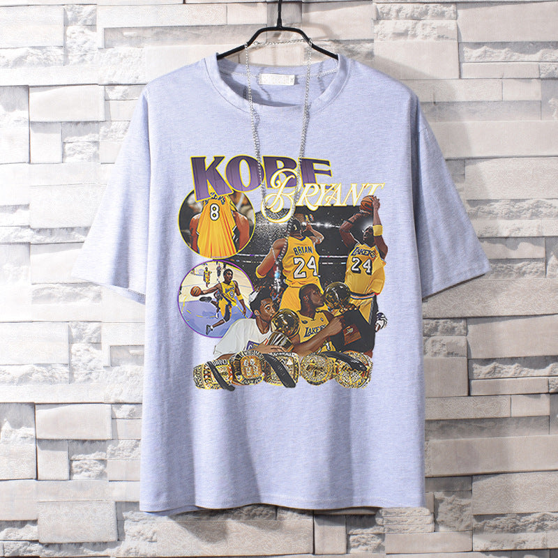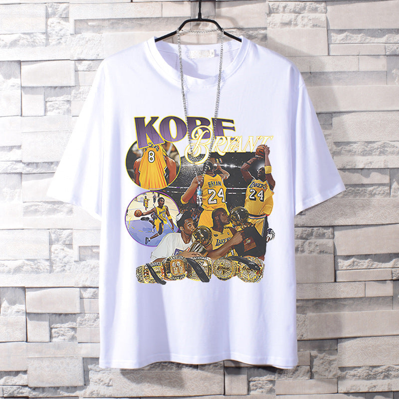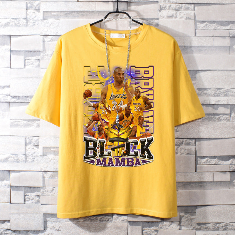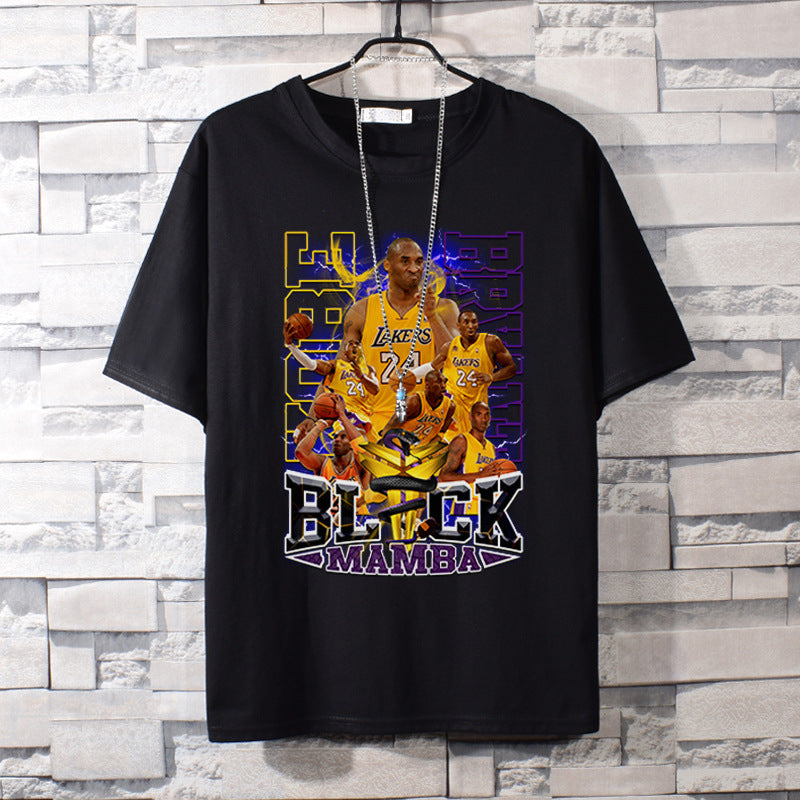 Basketball Sports T Shirt Pure Cotton Loose Short Sleeve T-Shirt Men'S Lakers Kobe Basketball Sports Half Sleeve Clothes