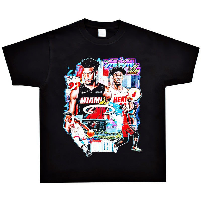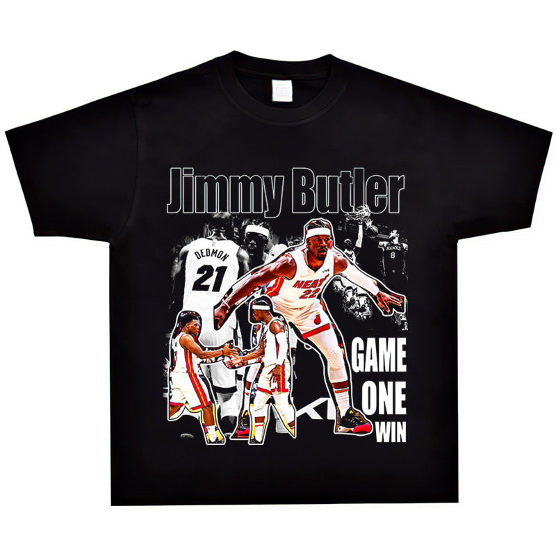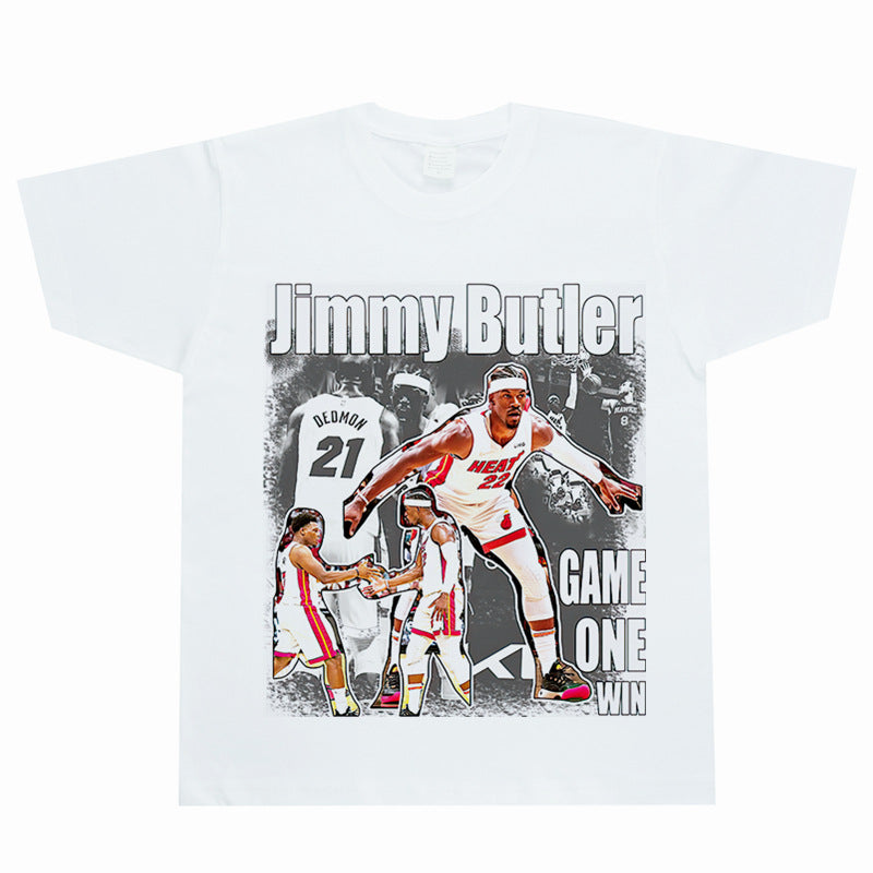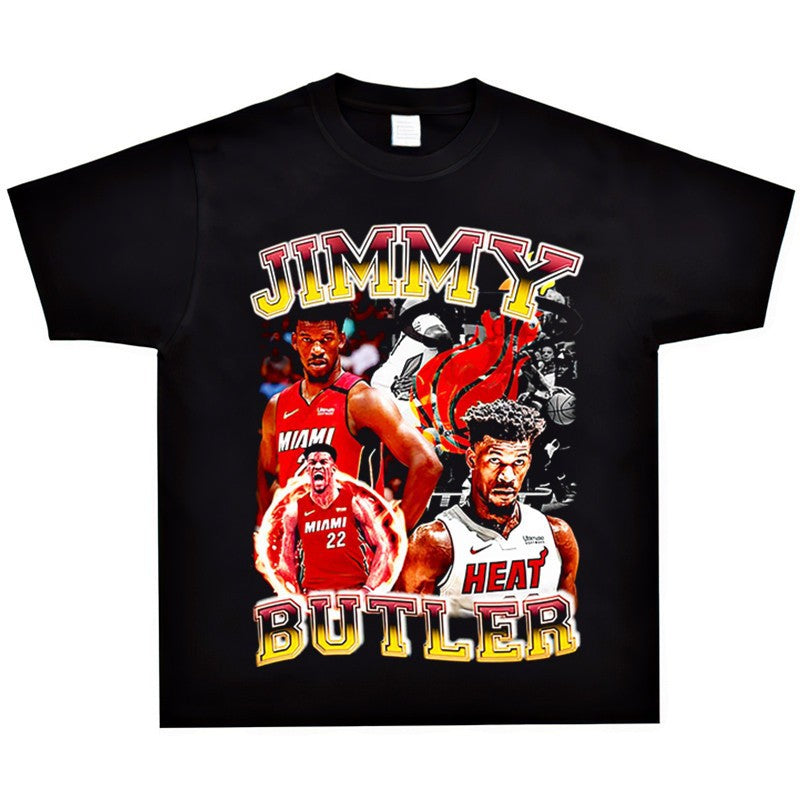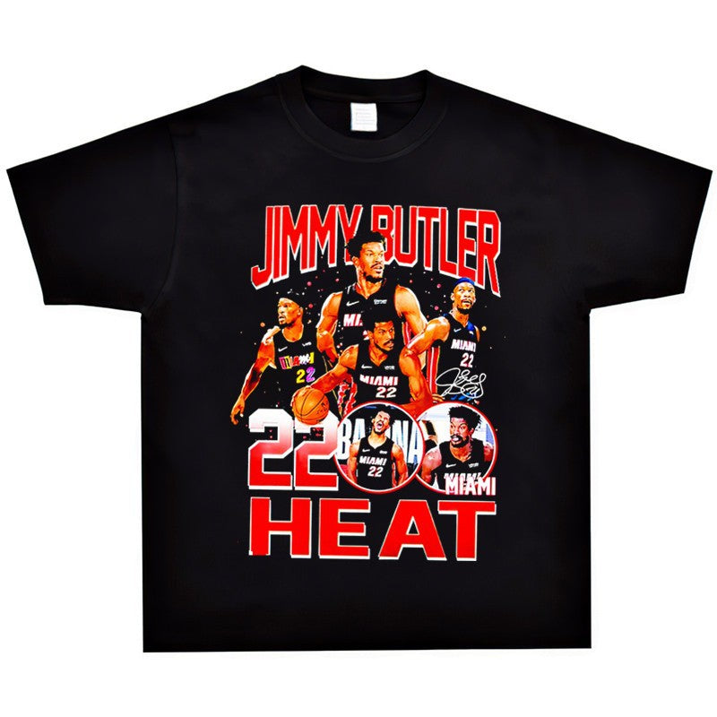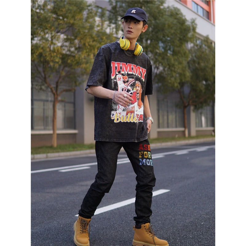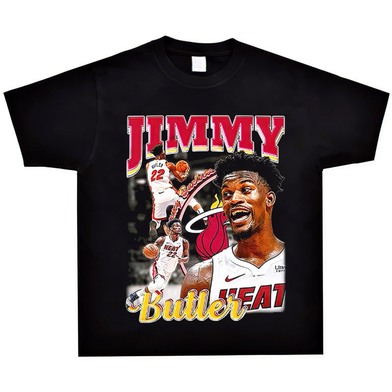 Basket Ball Star T Shirt Jimmy Butler Printed Washed Distressed T-shirt Cotton Short Sleeve round Neck