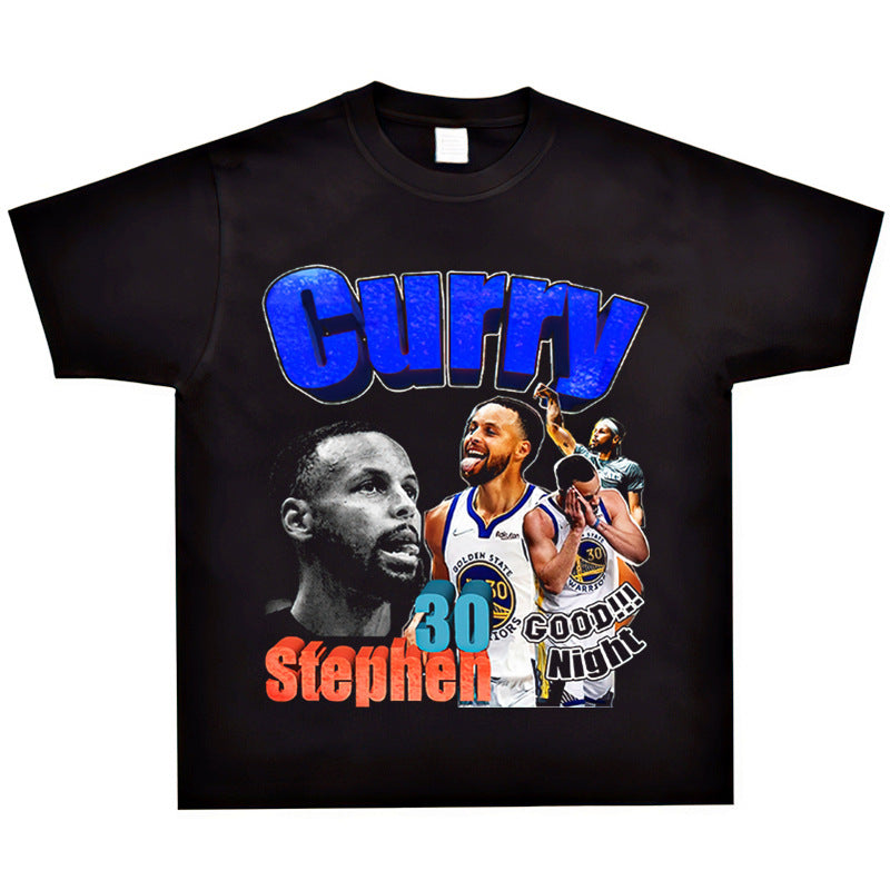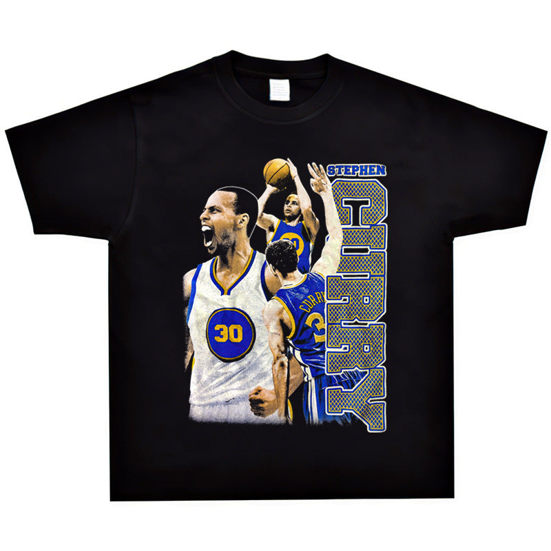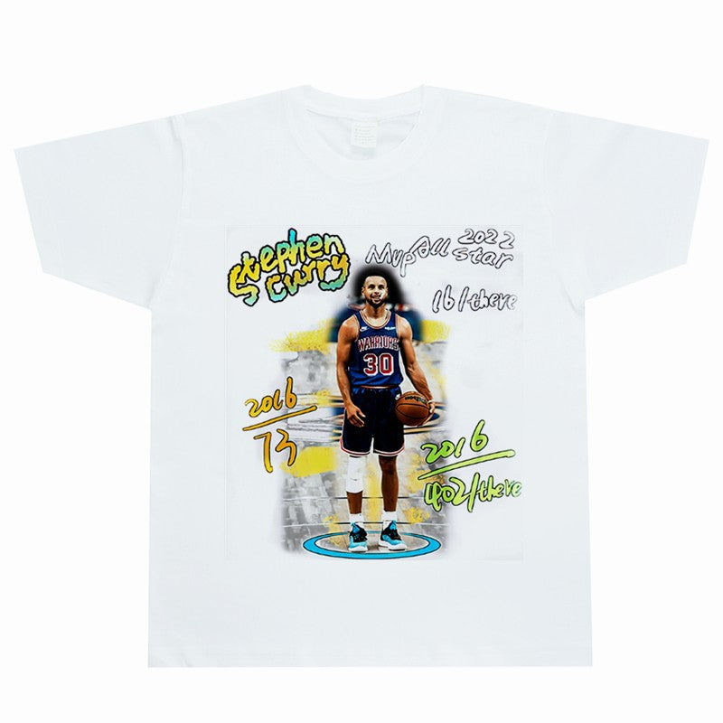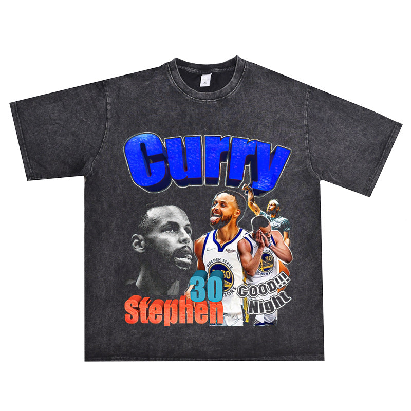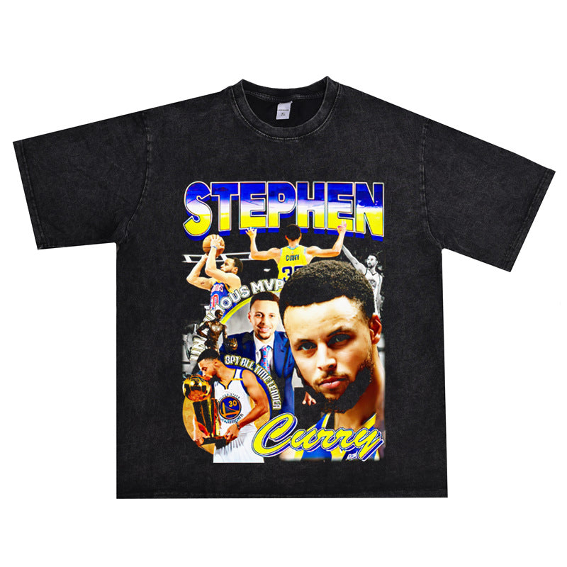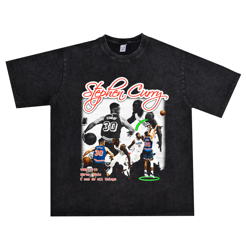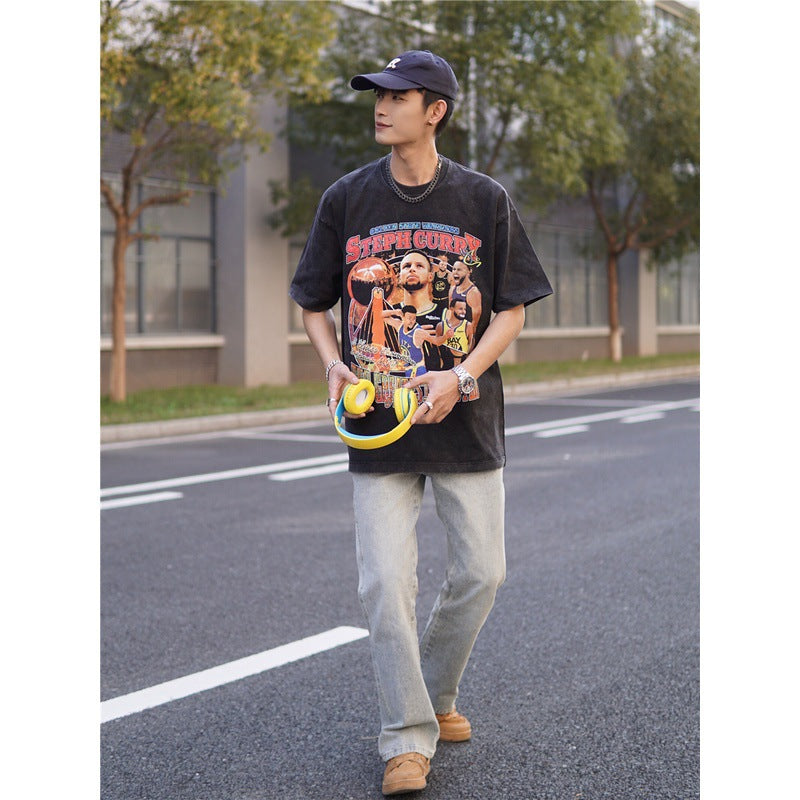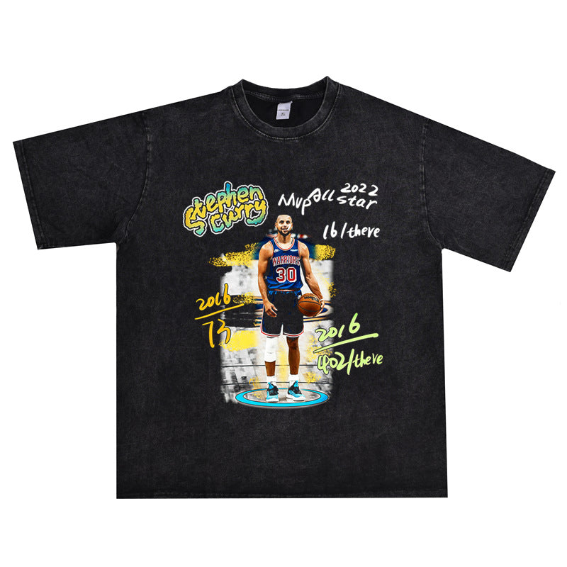 Basket Ball Star T Shirt Basketball Stephen Curry Washed Distressed Printed T-Shirt Short Sleeve Retro Pure Cotton