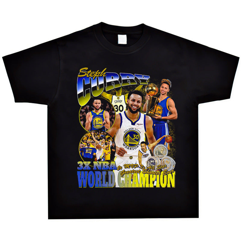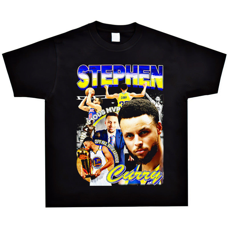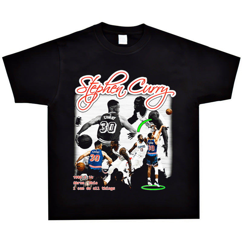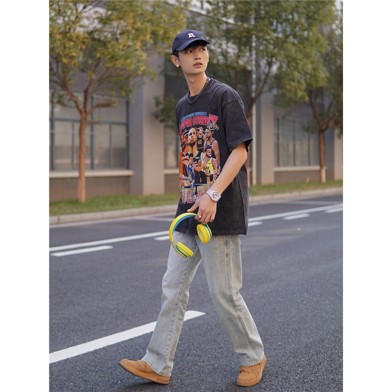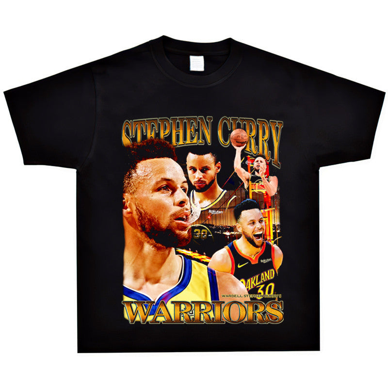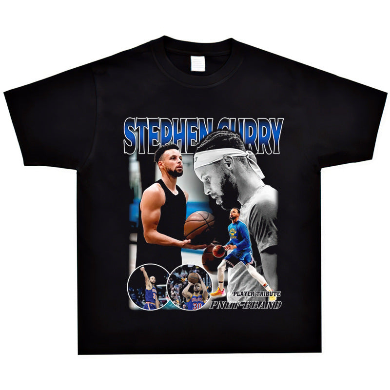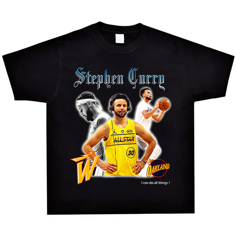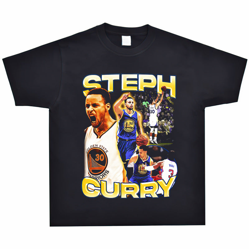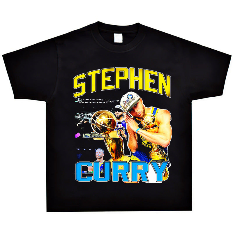 Basket Ball Star T Shirt Basketball Stephen Curry Washed Distressed Printed T-Shirt Short Sleeve Retro Pure Cotton